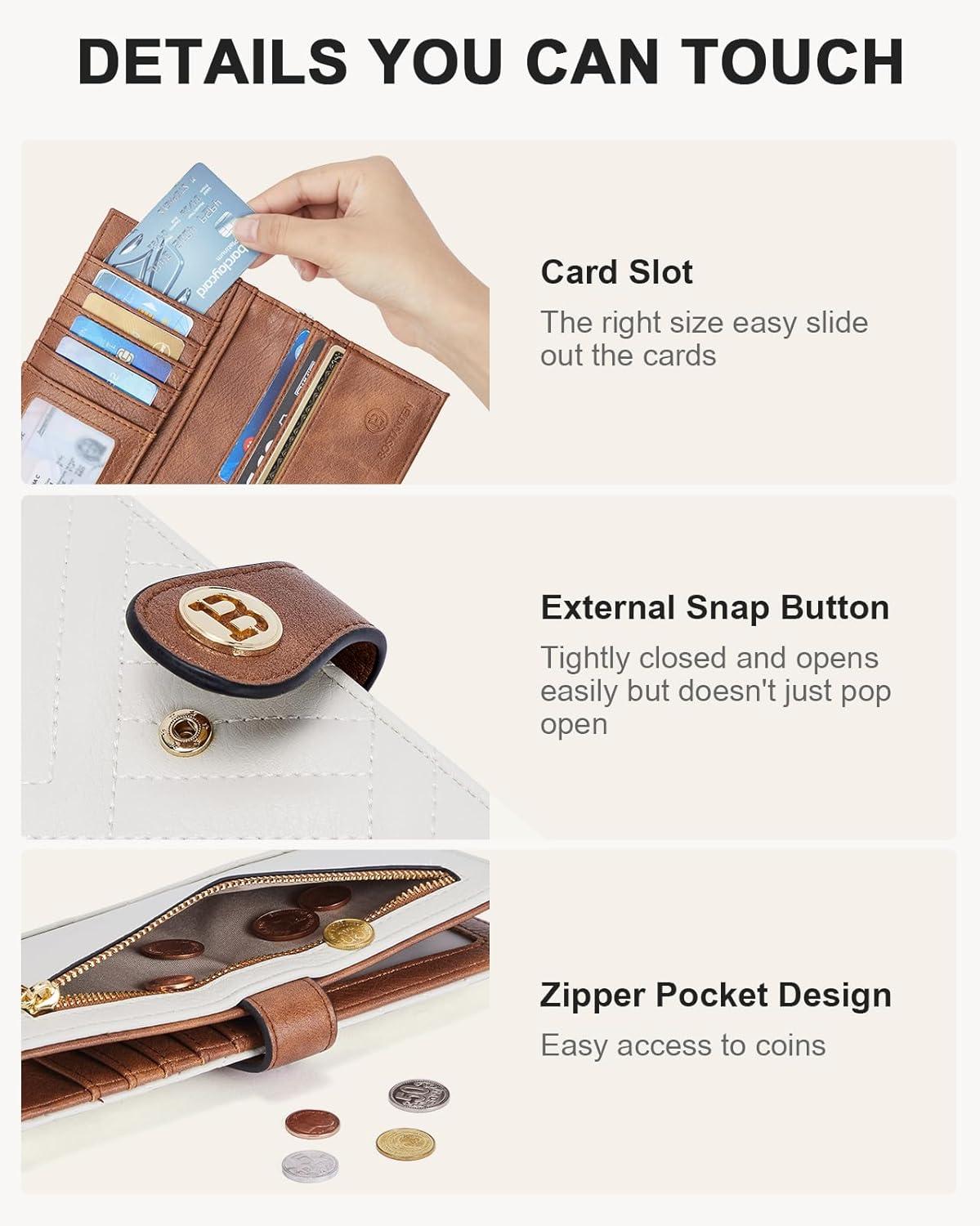 This slim wallet for women is made of vegan leather. The leather of the womens wallet is very durable, the stitches are sturdy. BOSTANTEN wallet for women, your travel and outdoor partner