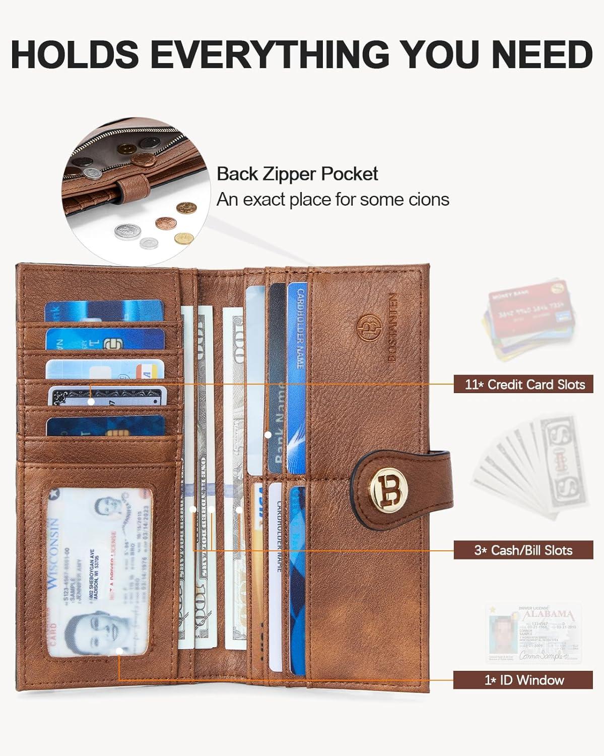 This slim wallet for women is made of vegan leather. The leather of the womens wallet is very durable, the stitches are sturdy. BOSTANTEN wallet for women, your travel and outdoor partner