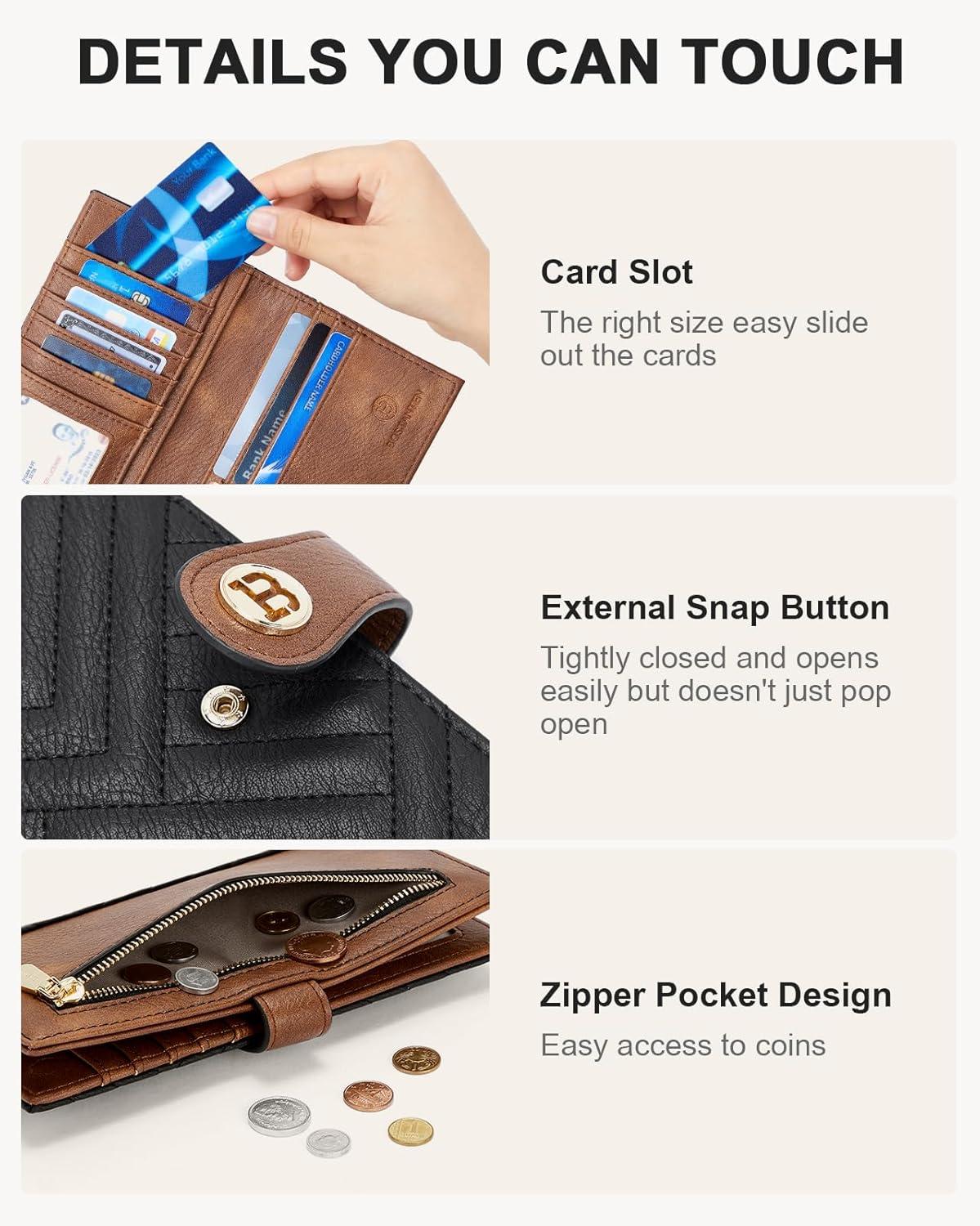 imageBOSTANTEN Slim Women Wallet Leather RFID Credit Card Holder Bifold Ladies Wallets with Zipper Coin Pocket Beige and BrownBlack