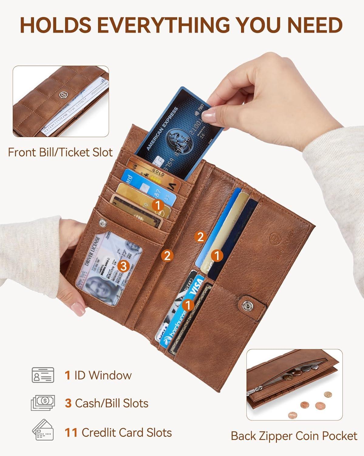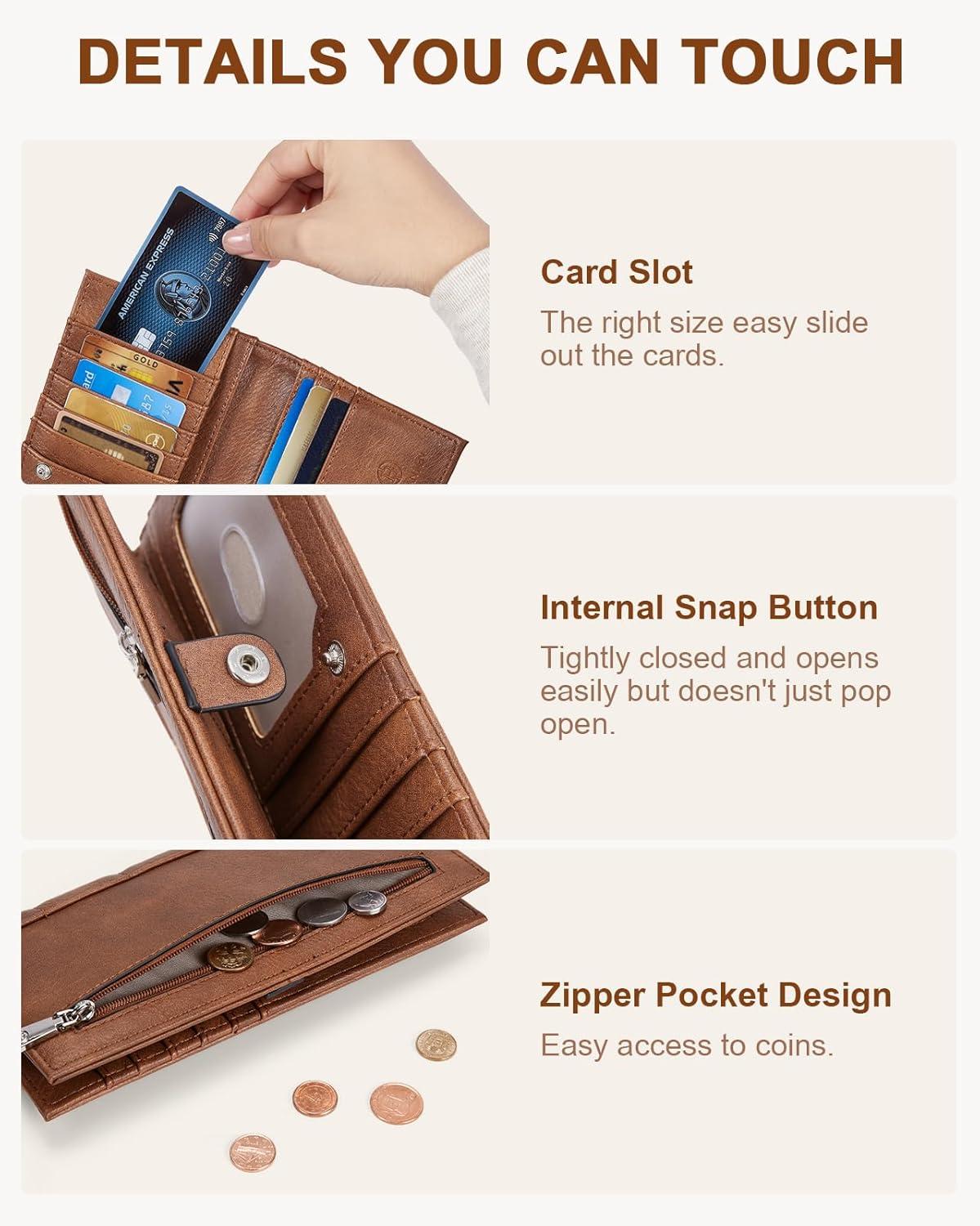 BOSTANTEN Slim Women Wallet Leather RFID Credit Card Holder Bifold Ladies Wallets with Zipper Coin Pocket, Beige and Brown(S-Brown)