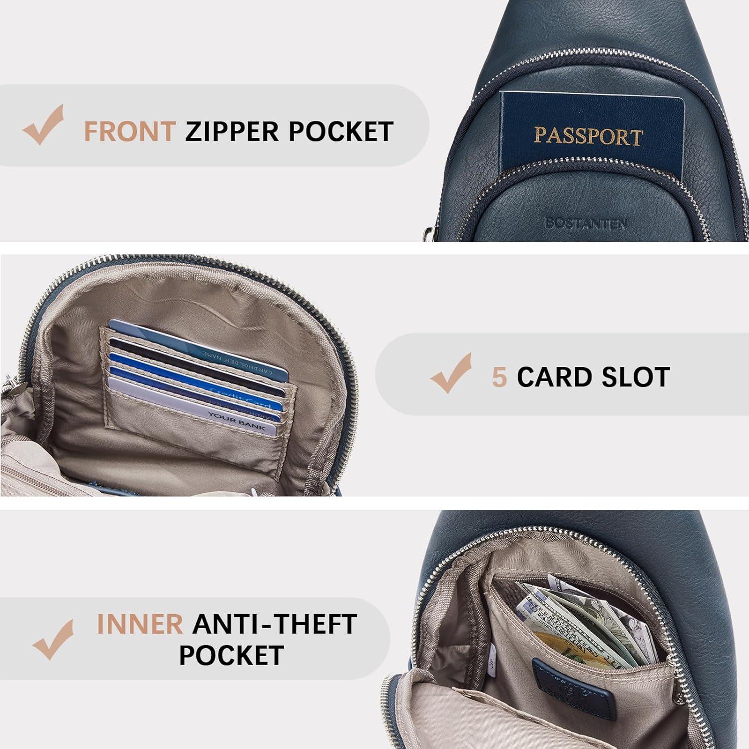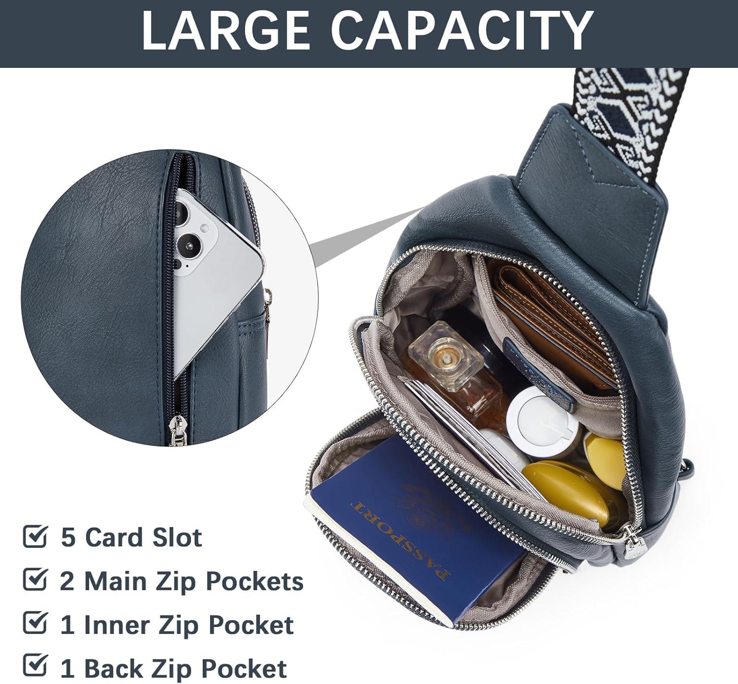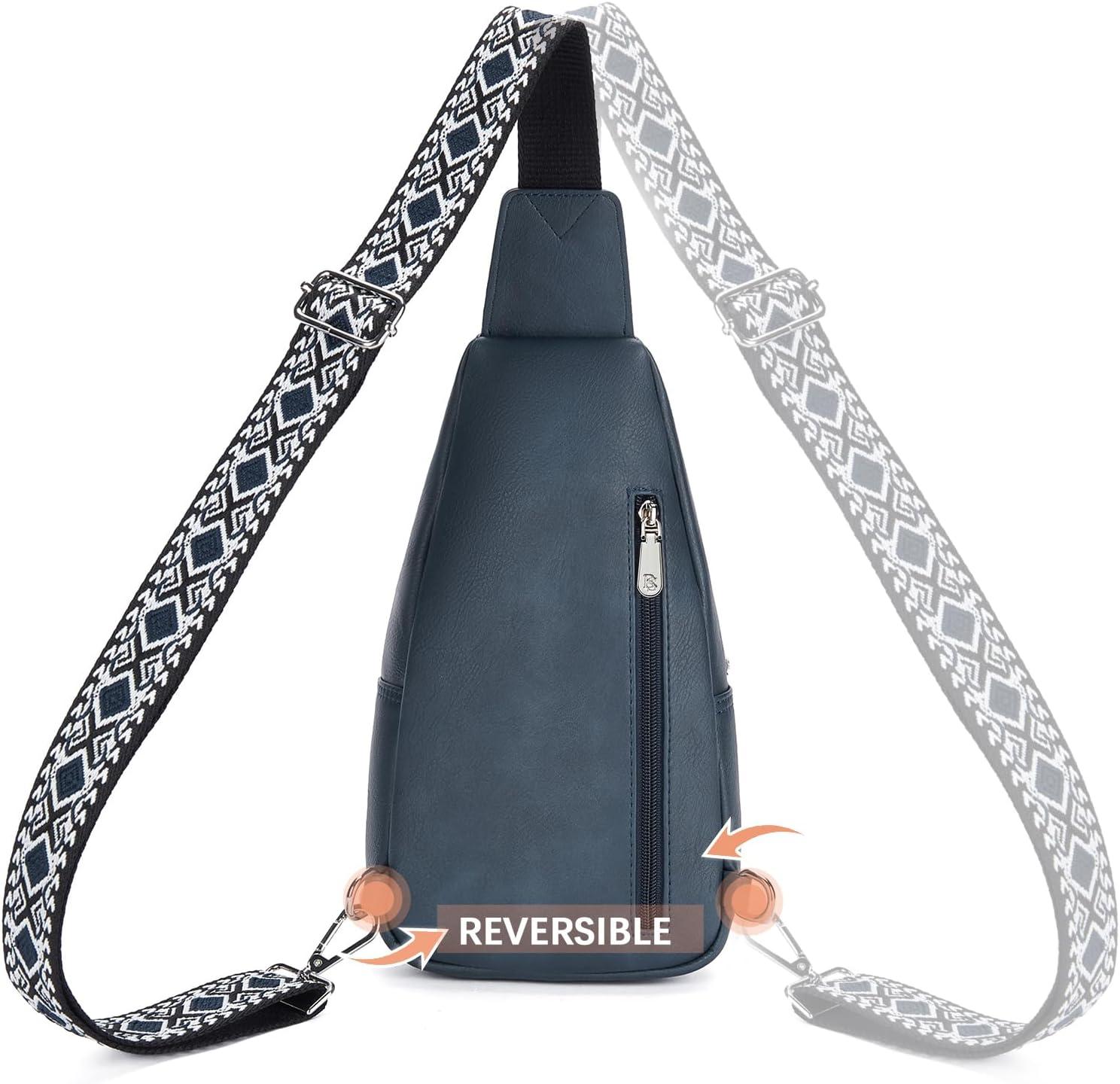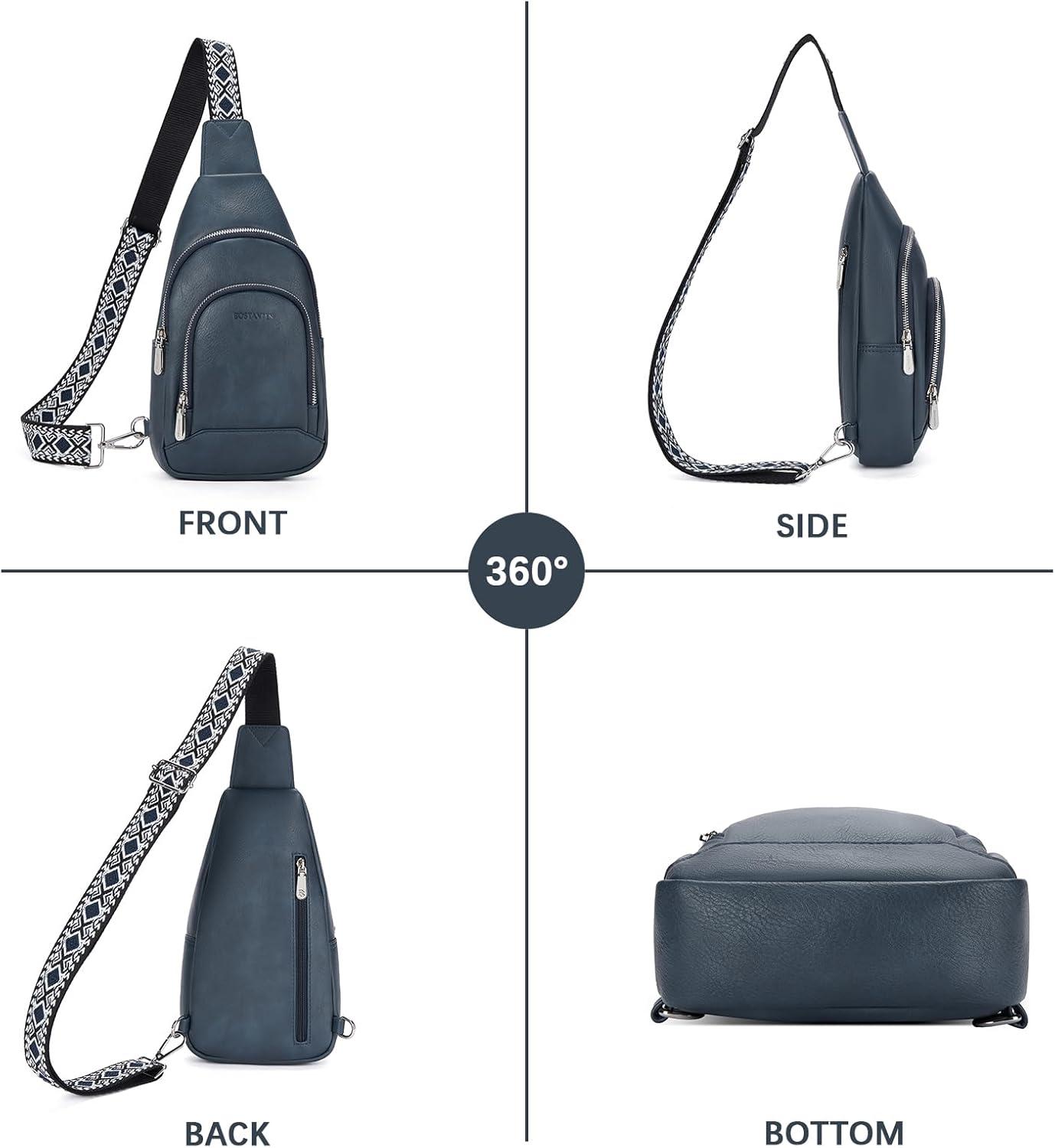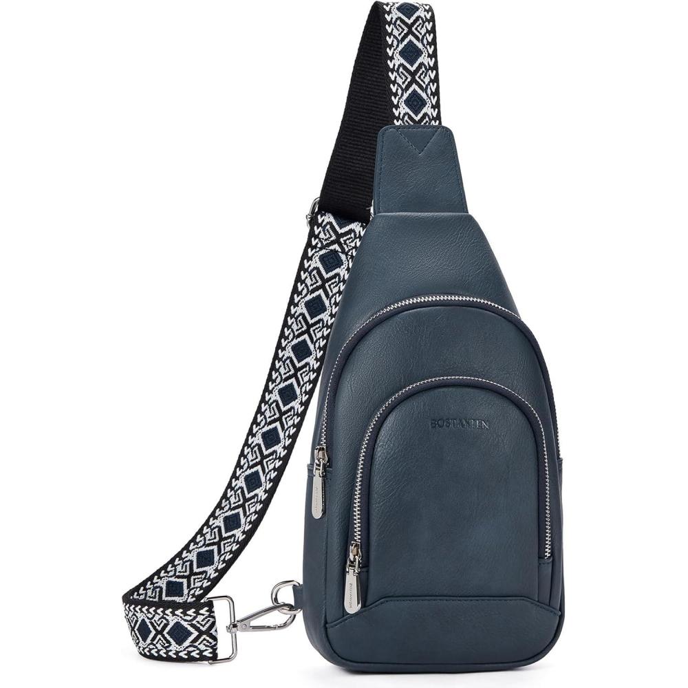 imageBOSTANTEN Sling Bag for Women Leather Crossbody Bag Vintage Cross Body Purse for Travel with Guitar Strap Bohemian StyleBlue