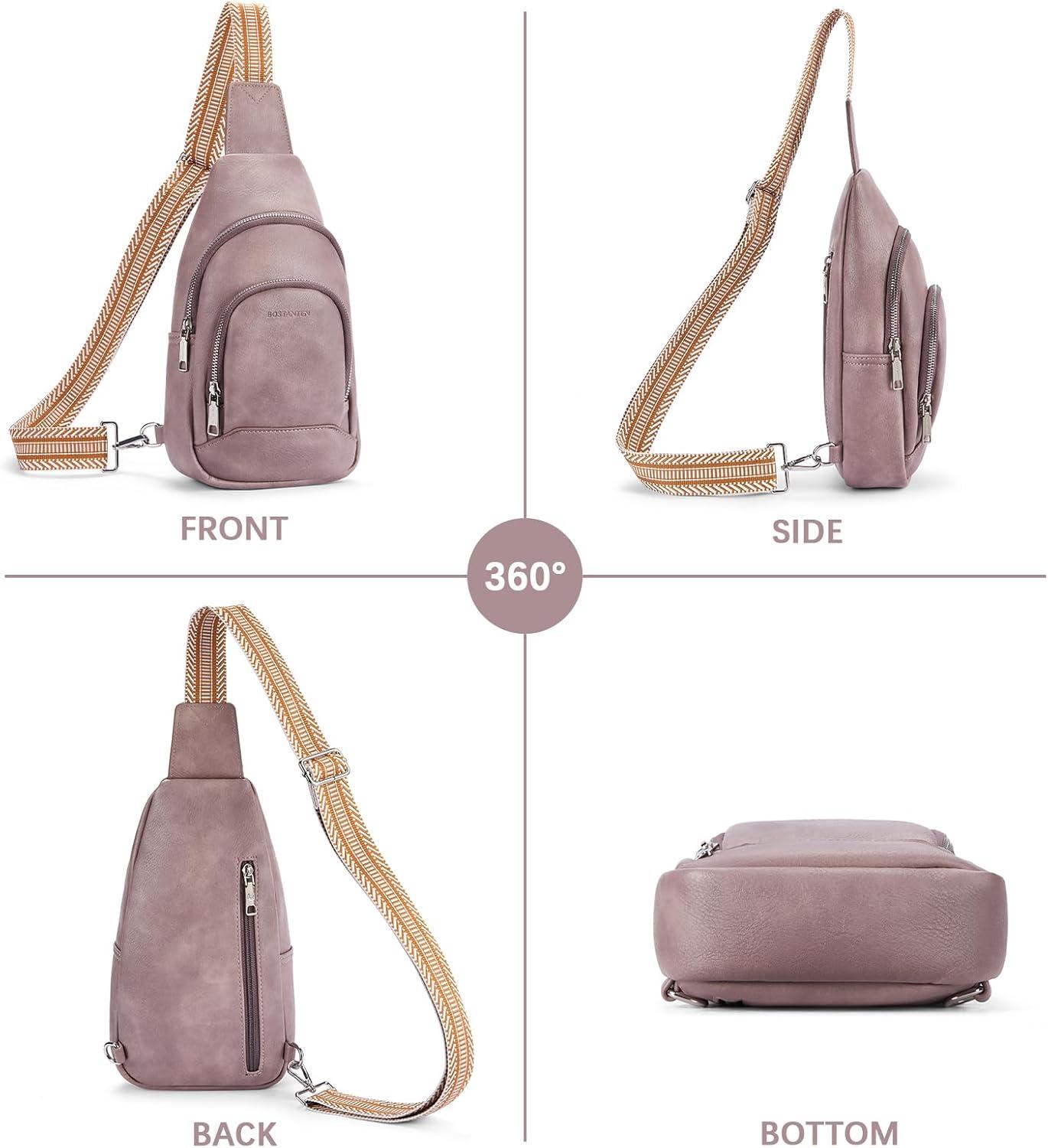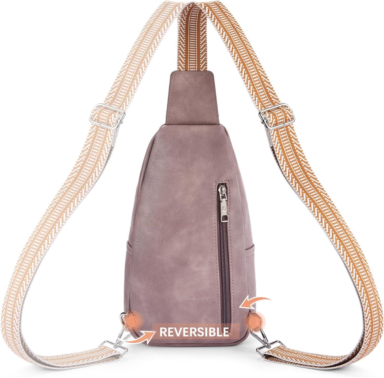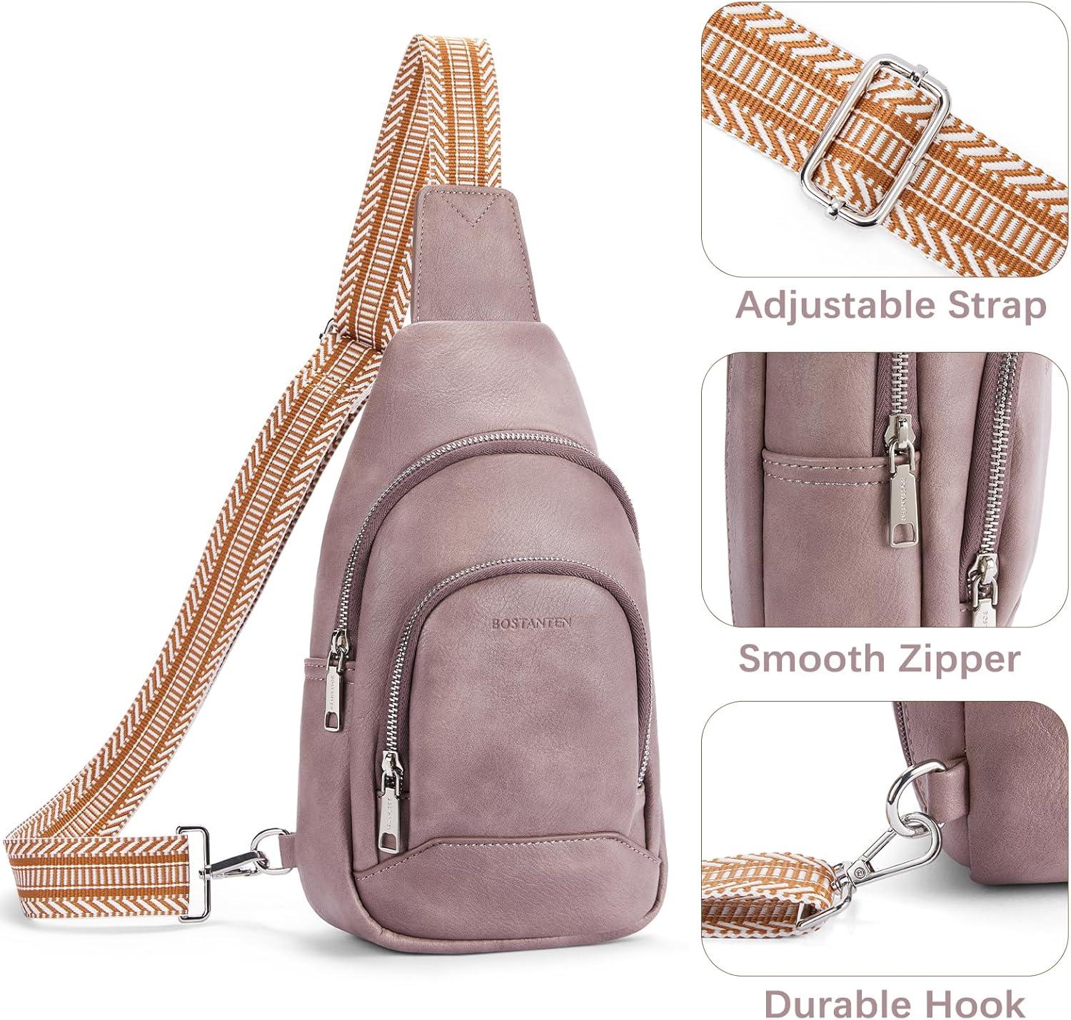 imageBOSTANTEN Sling Bag for Women Leather Crossbody Bag Vintage Cross Body Purse for Travel with Guitar Strap Bohemian StylePurple