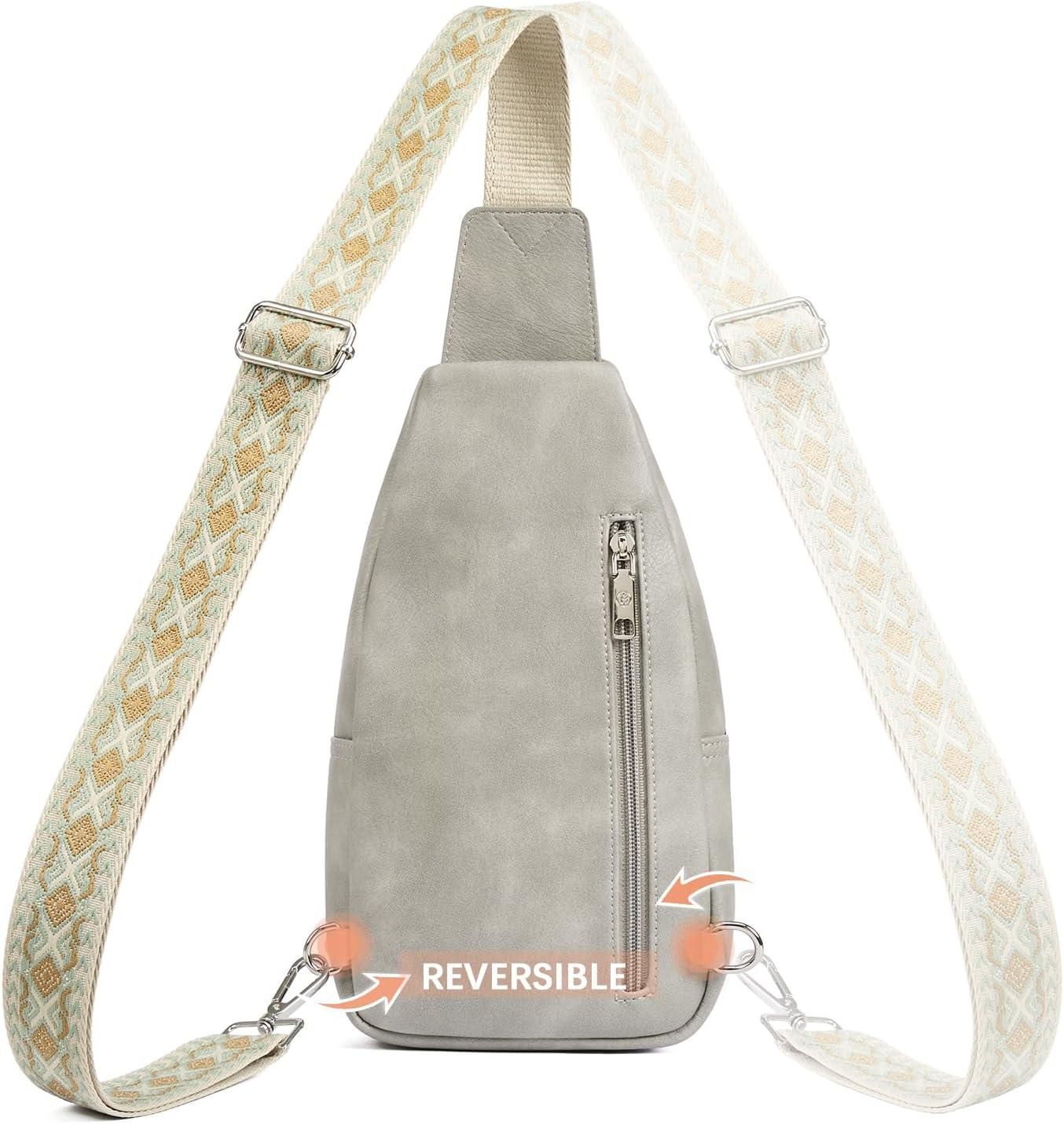 BOSTANTEN Sling Bag for Women Leather Crossbody Bag Vintage Cross Body Purse for Travel with Guitar Strap, Bohemian Style(Twilight Grey)