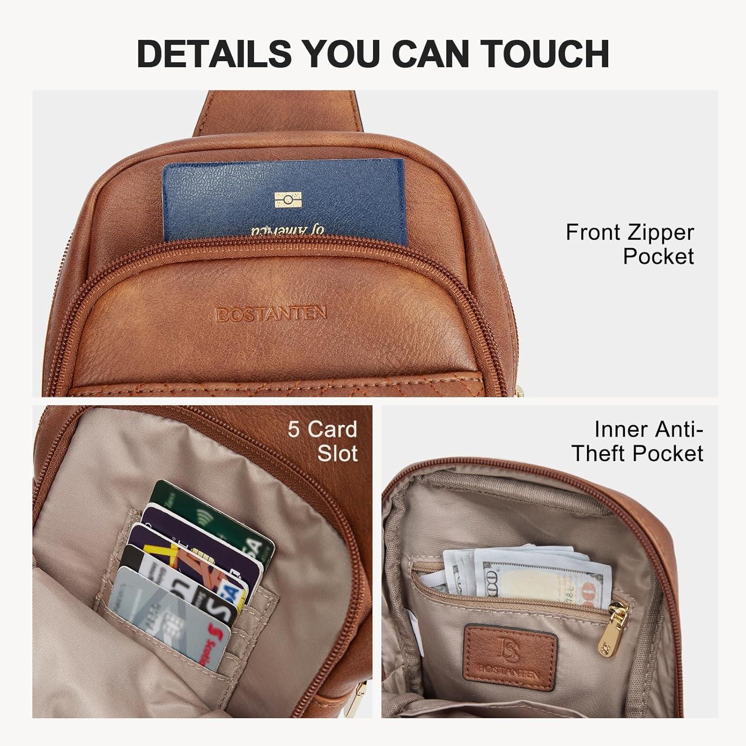 imageBOSTANTEN Sling Bag Quilted Crossbody Bags for Women Cross Body Purse Leather Fanny Pack with Adjustable Guitar StrapAbrown