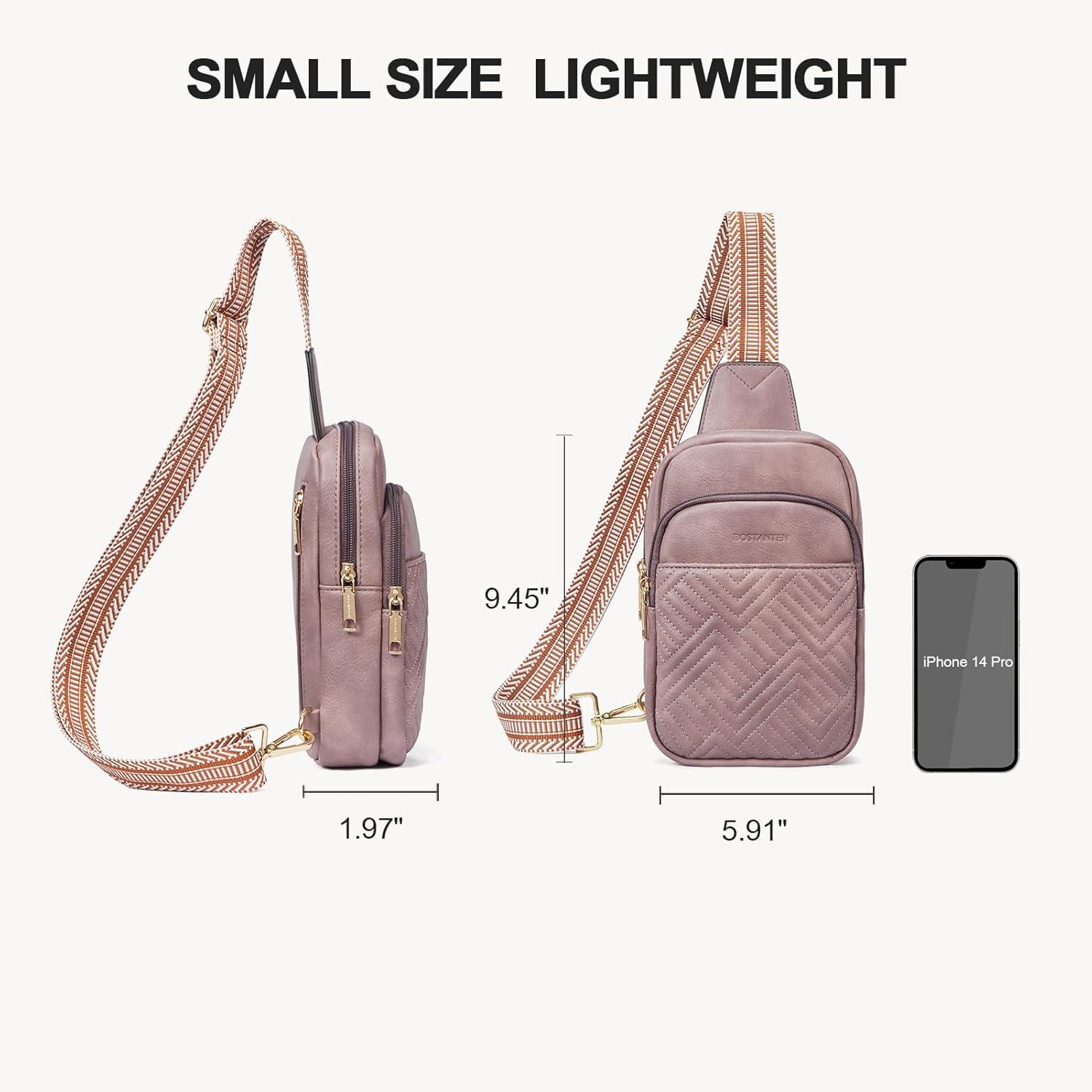 BOSTANTEN Sling Bag Quilted Crossbody Bags for Women Cross Body Purse Leather Fanny Pack with Adjustable Guitar Strap(A-purple)