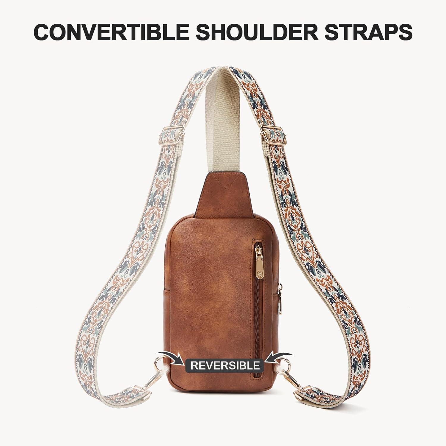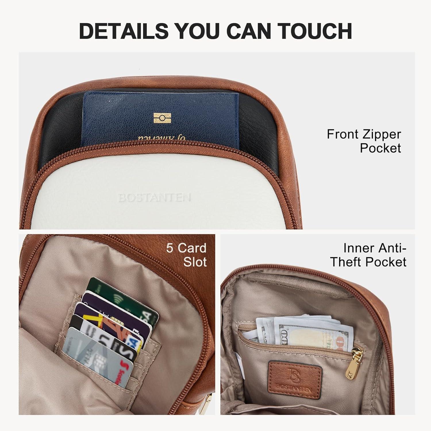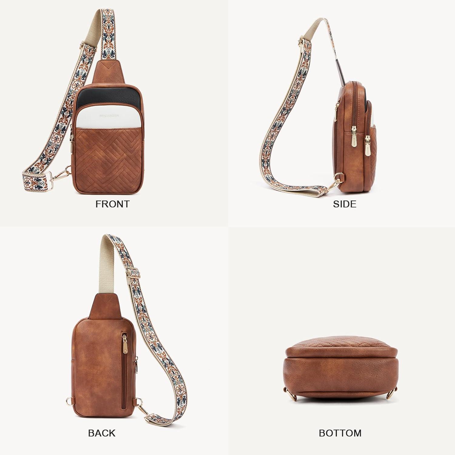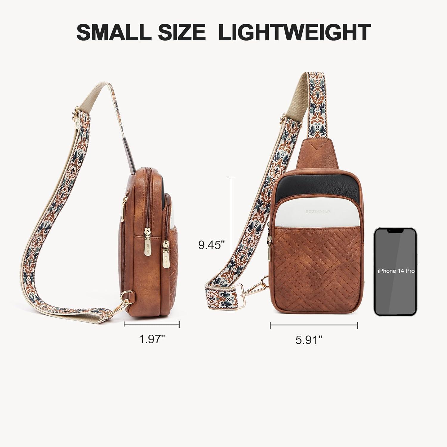 imageBOSTANTEN Sling Bag Quilted Crossbody Bags for Women Cross Body Purse Leather Fanny Pack with Adjustable Guitar StrapAtricolor Mix