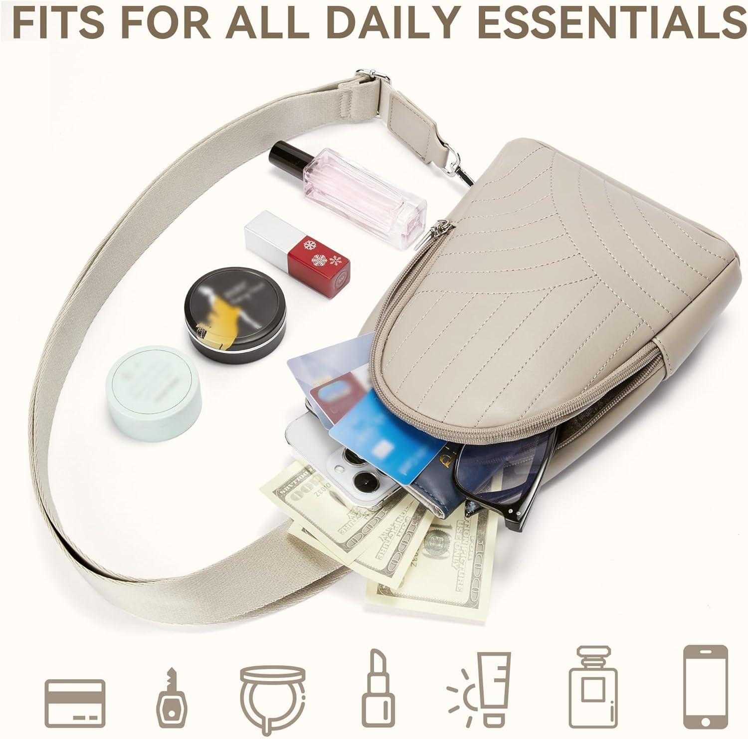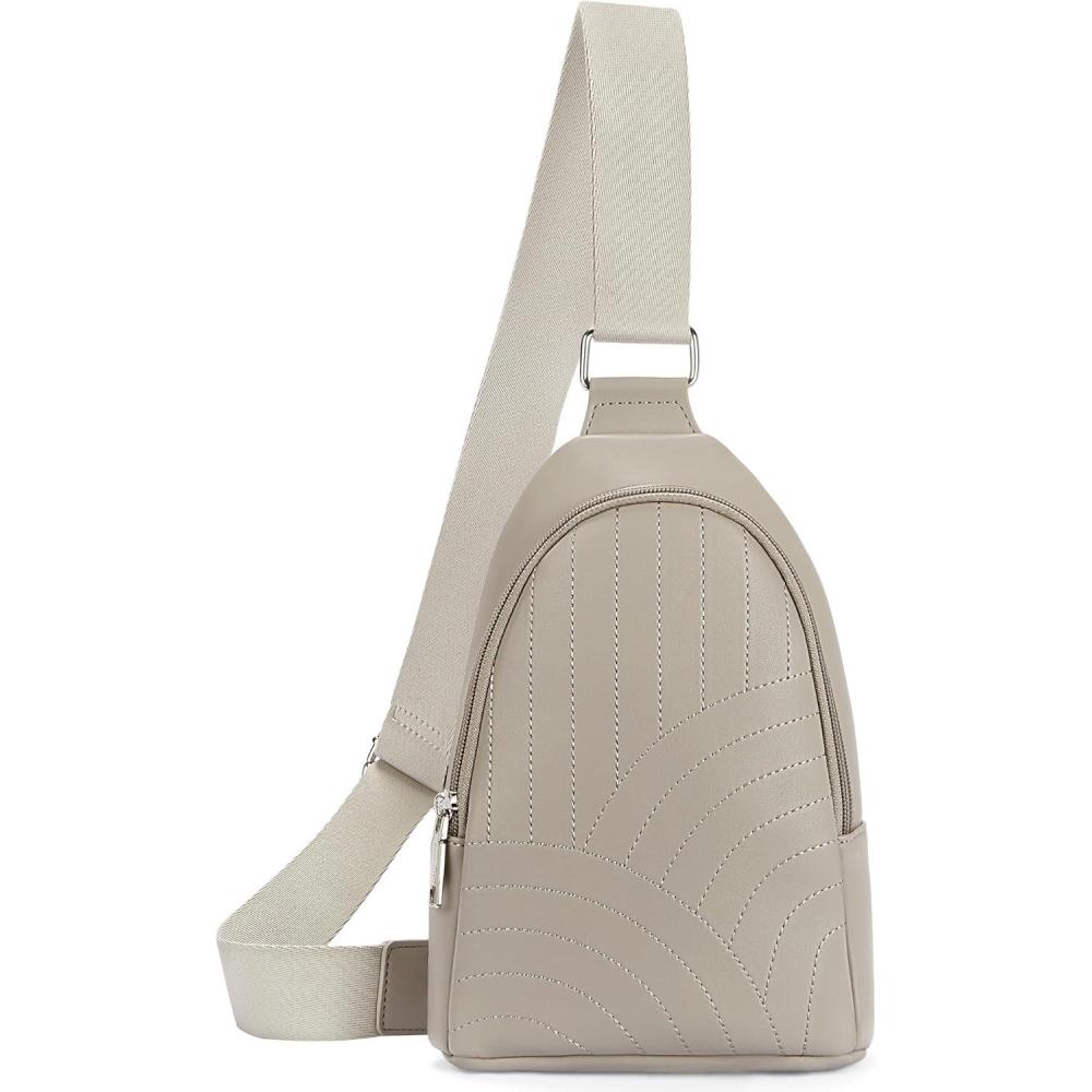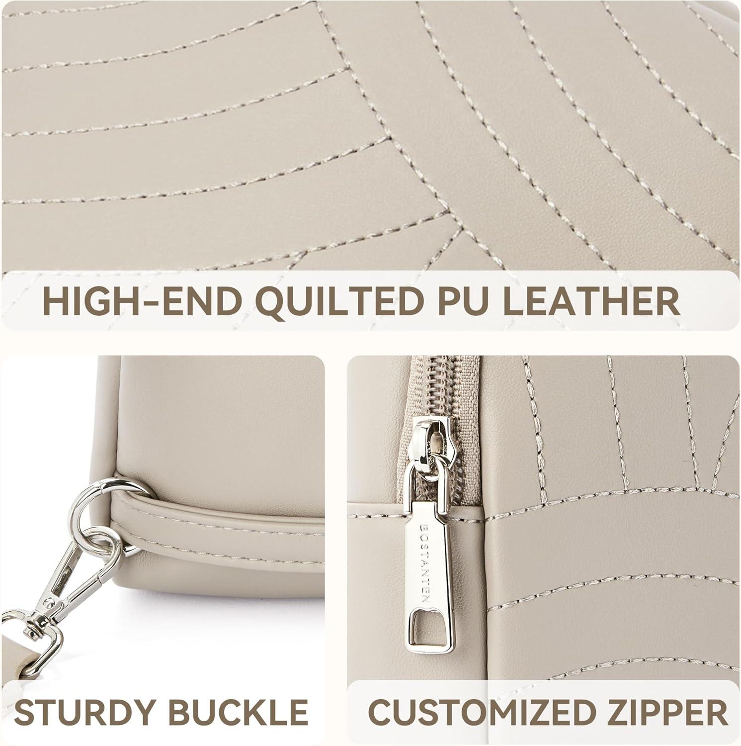 BOSTANTEN Sling Bag Quilted Crossbody Bags for Women Cross Body Purse Leather Fanny Pack with Adjustable Guitar Strap(D-grey)