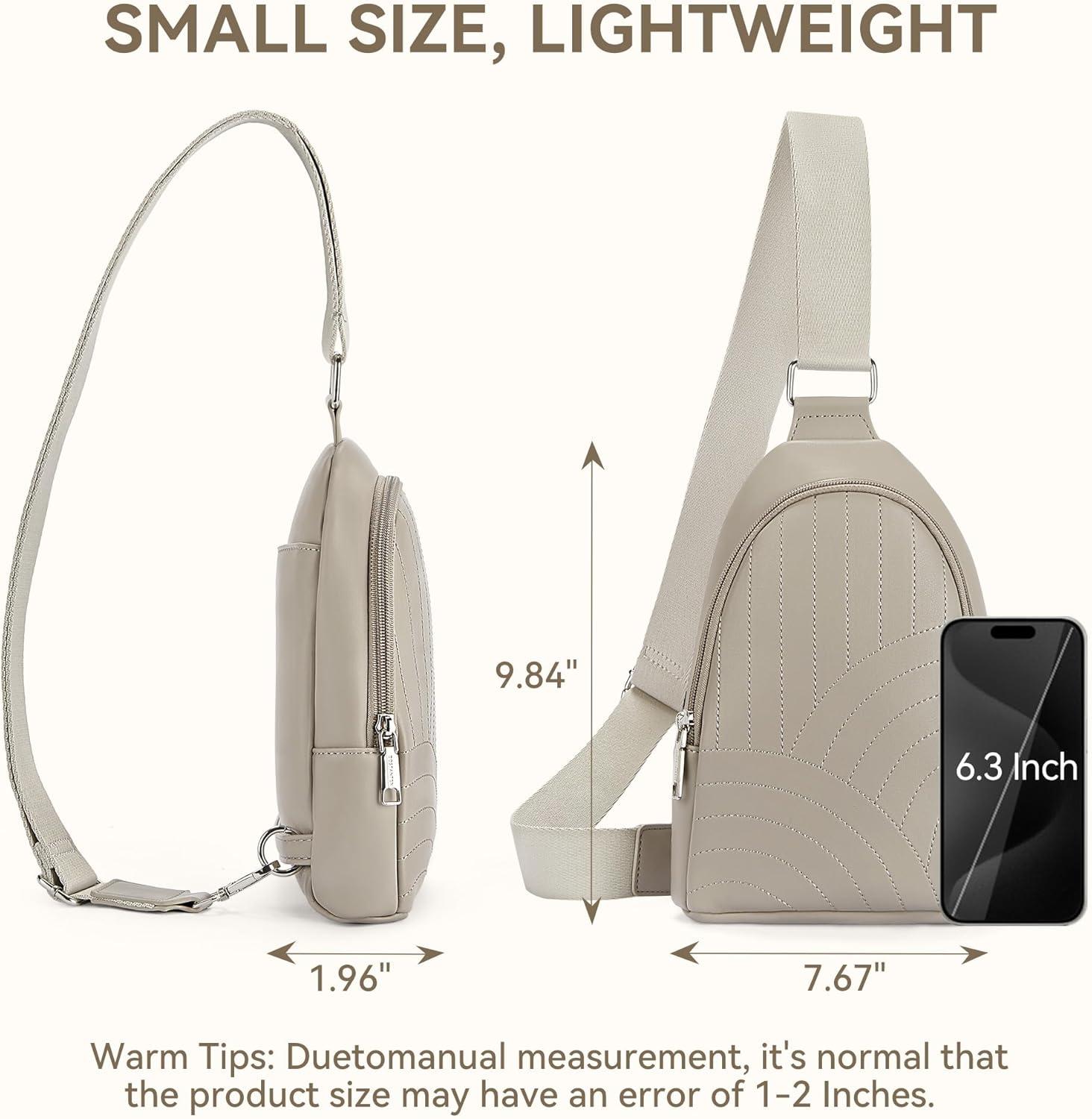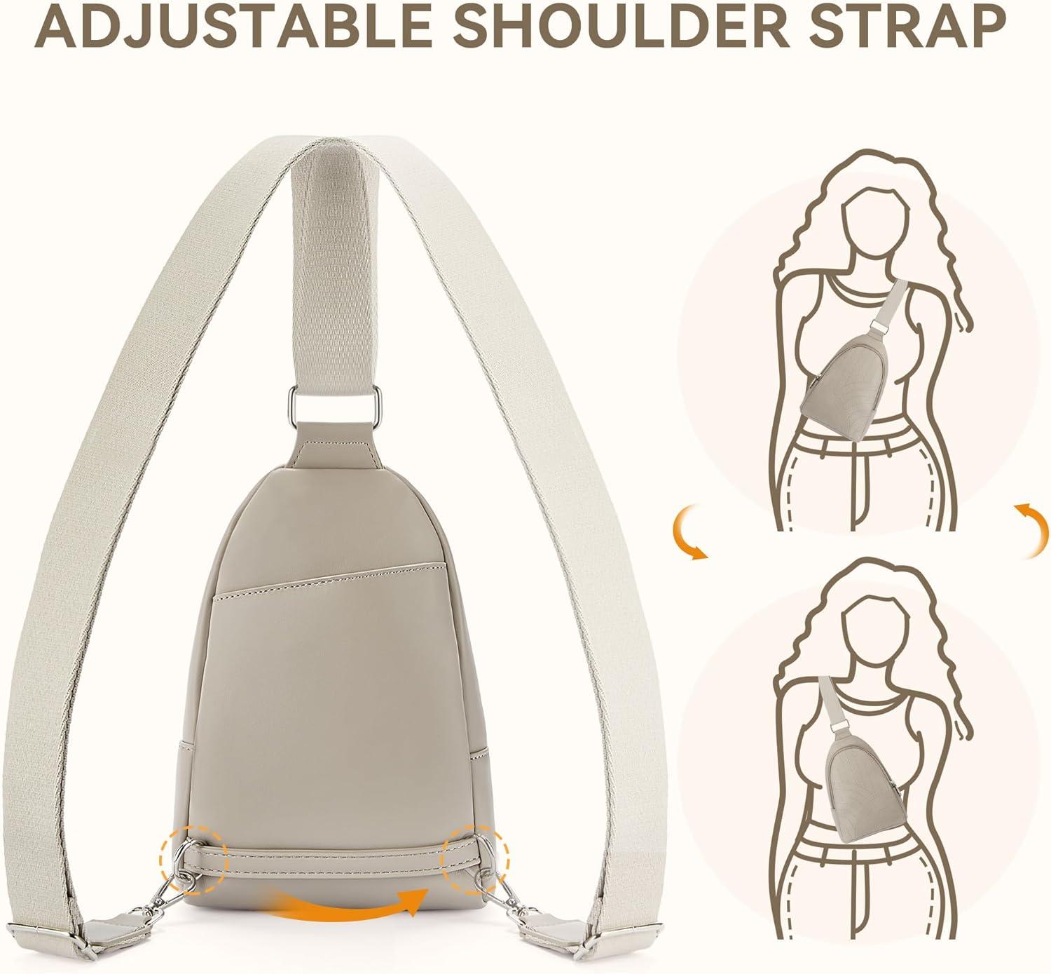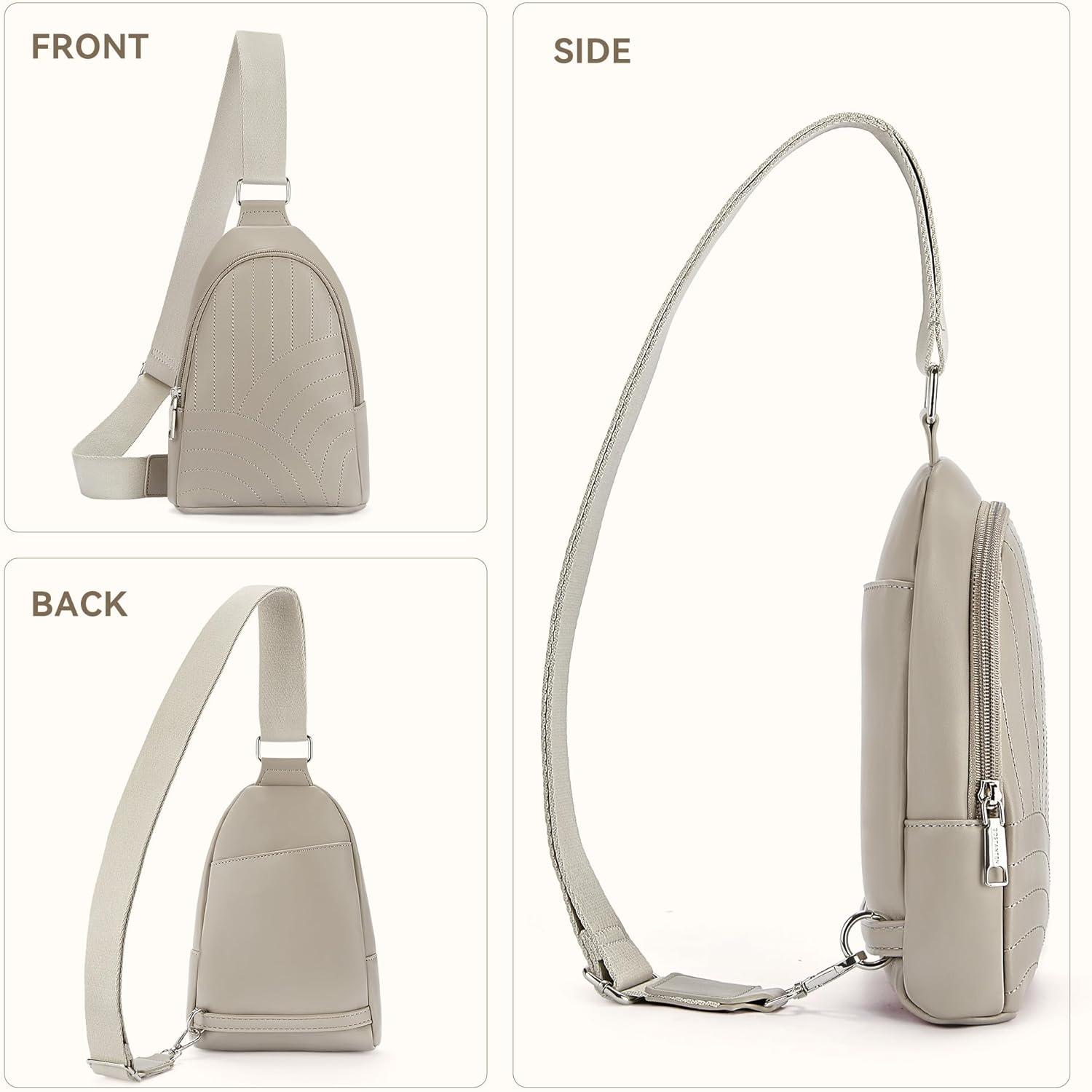 BOSTANTEN Sling Bag Quilted Crossbody Bags for Women Cross Body Purse Leather Fanny Pack with Adjustable Guitar Strap(D-grey)