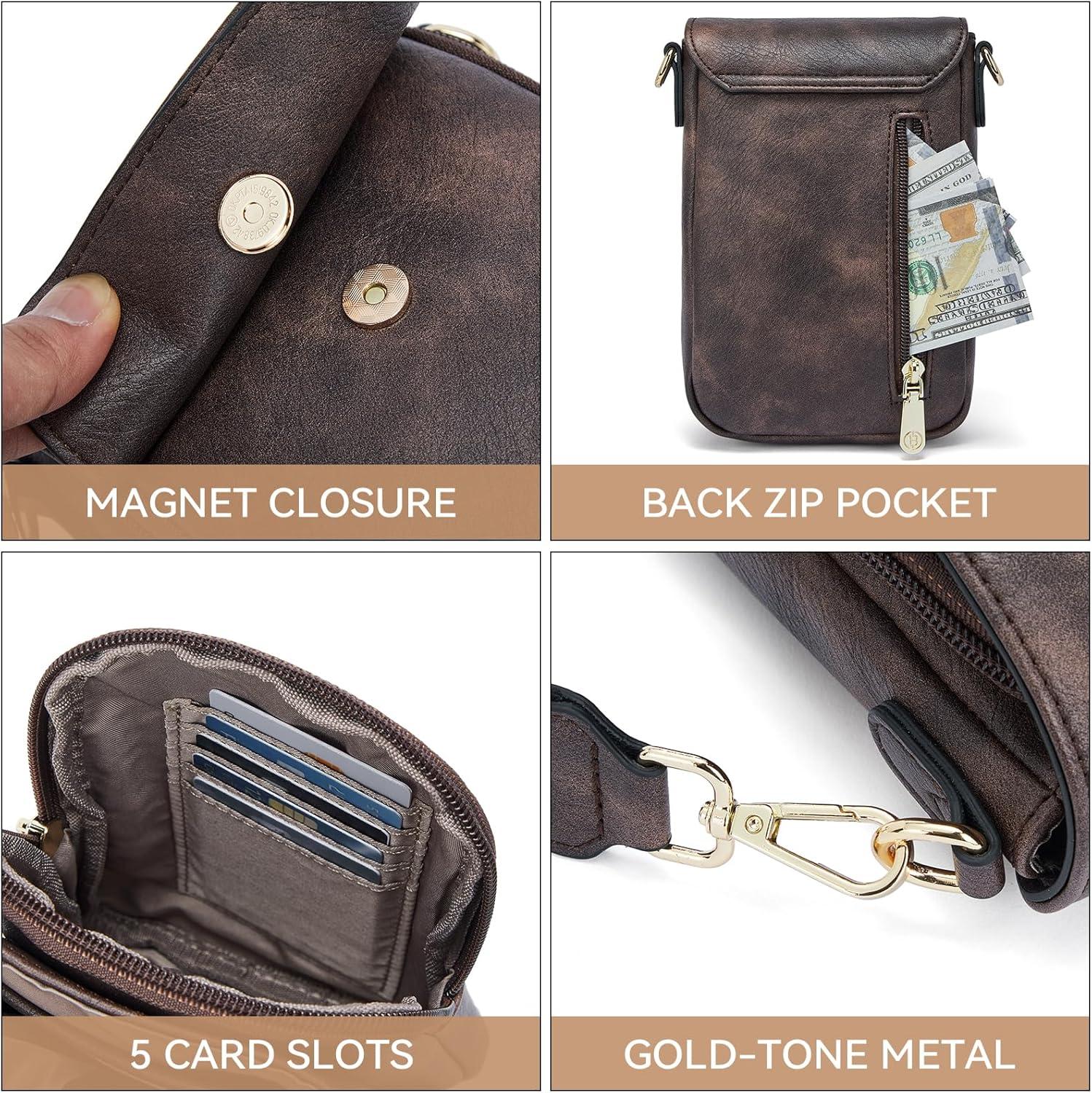 BOSTANTEN Small Crossbody Bags for Women Cell Phone Purse Leather Wallet Handbags with Card Slots(A04-coffee)