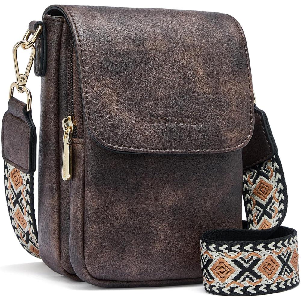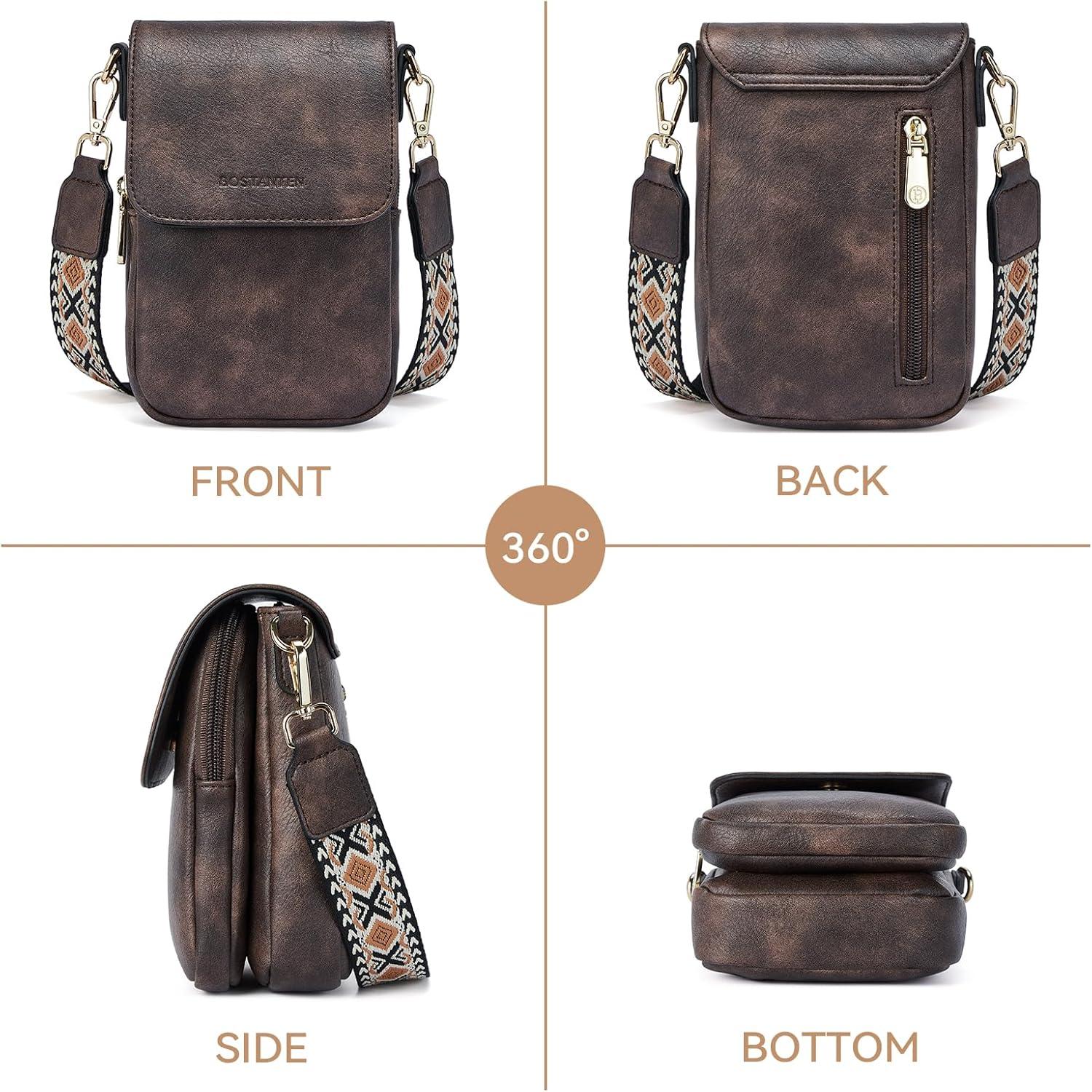 BOSTANTEN Small Crossbody Bags for Women Cell Phone Purse Leather Wallet Handbags with Card Slots(A03-brown)