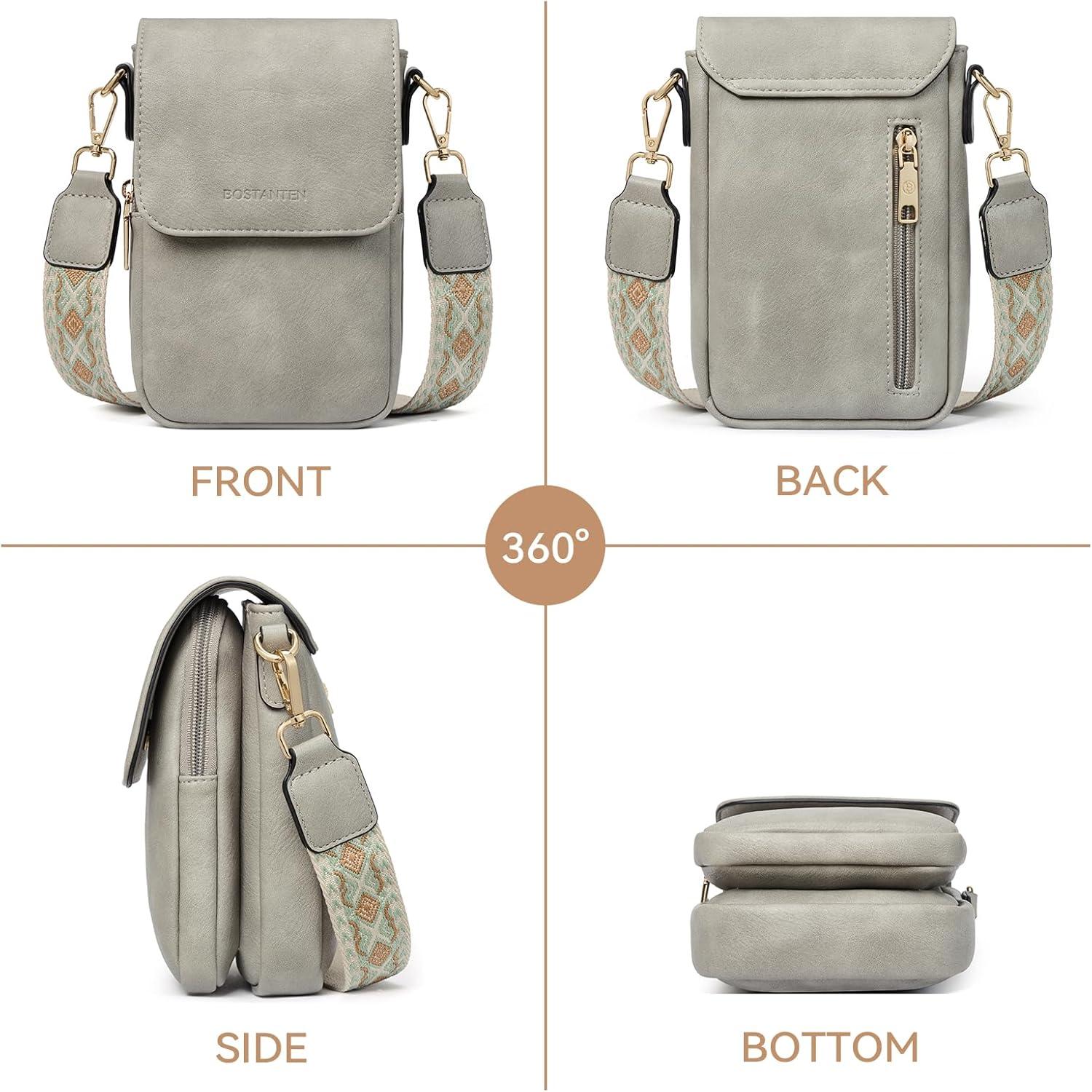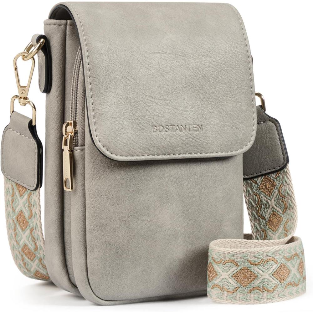 BOSTANTEN Small Crossbody Bags for Women Cell Phone Purse Leather Wallet Handbags with Card Slots(A06-grey)