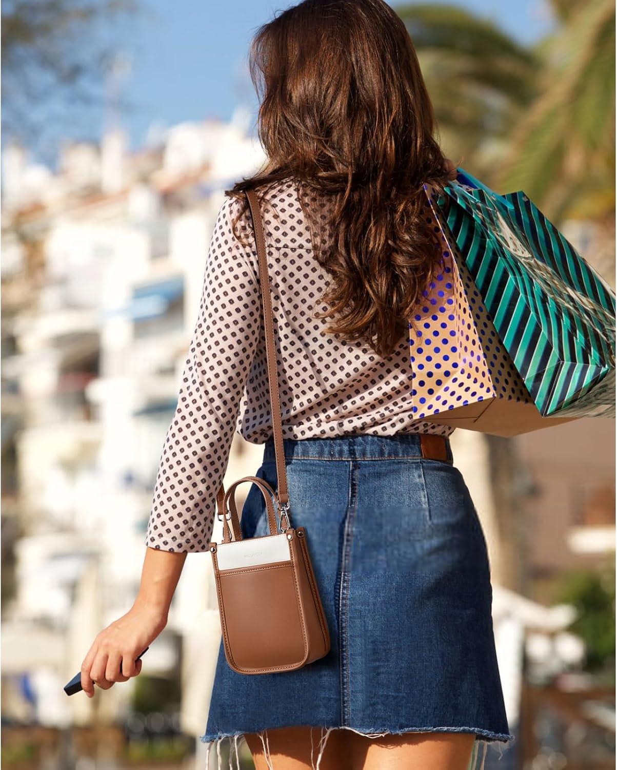 imageBOSTANTEN Small Crossbody Bags for Women Designer Zip Cell Phone Purse Shoulder Handbags Wallet with Card SlotsCbeige With Brown