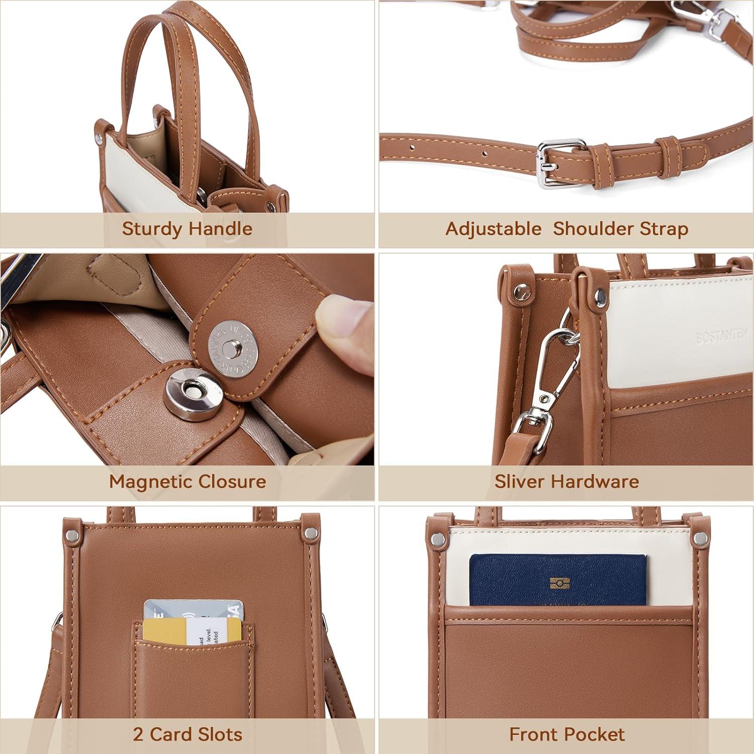 BOSTANTEN Small Crossbody Bags for Women Designer Zip Cell Phone Purse Shoulder Handbags Wallet with Card Slots(C-black With Brown With Beige)