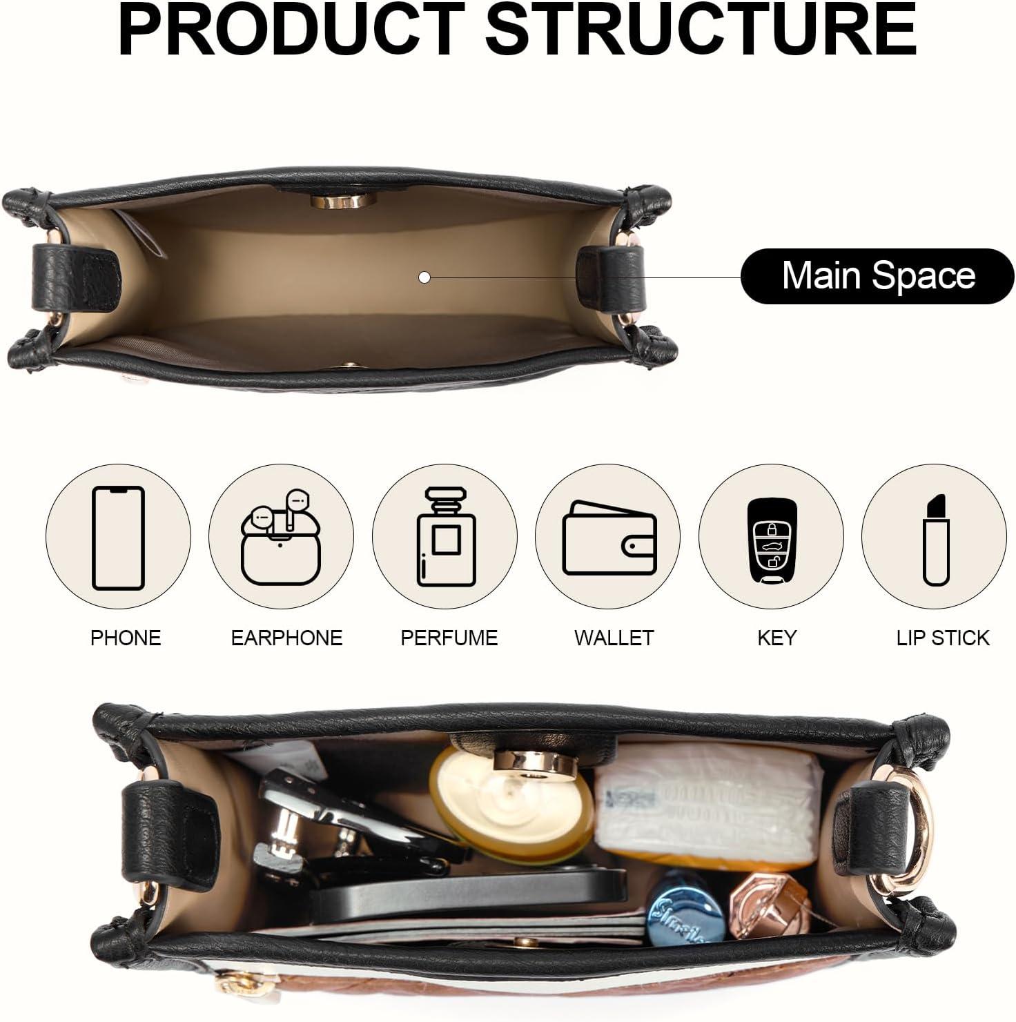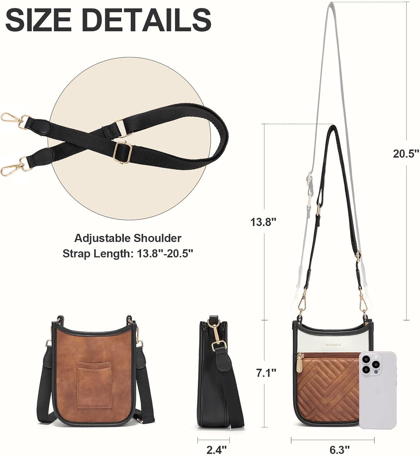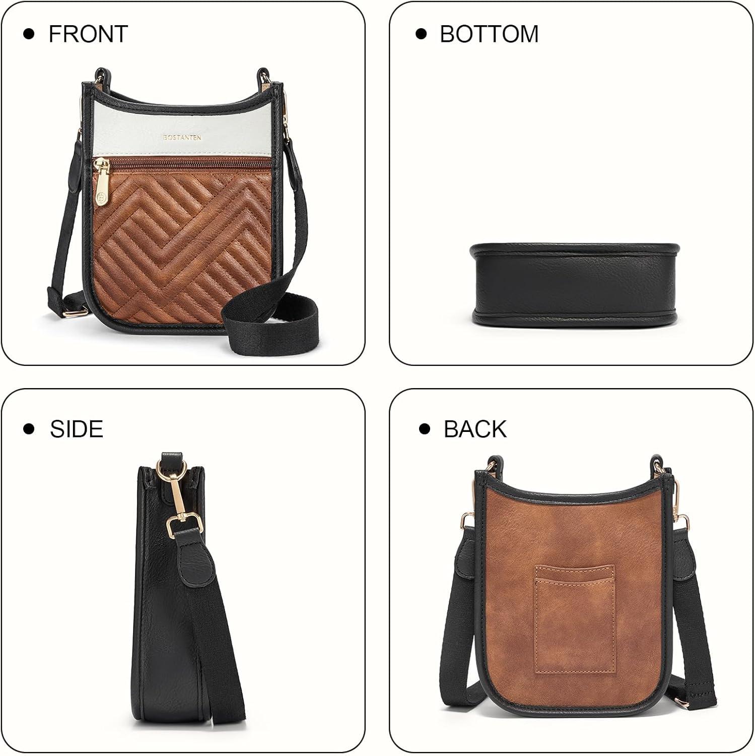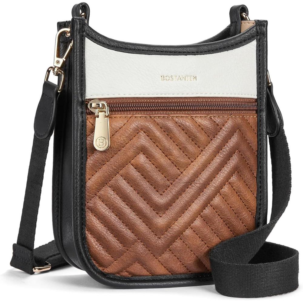 BOSTANTEN Small Crossbody Bags for Women Designer Zip Cell Phone Purse Shoulder Handbags Wallet with Card Slots(C-black With Brown With Beige)