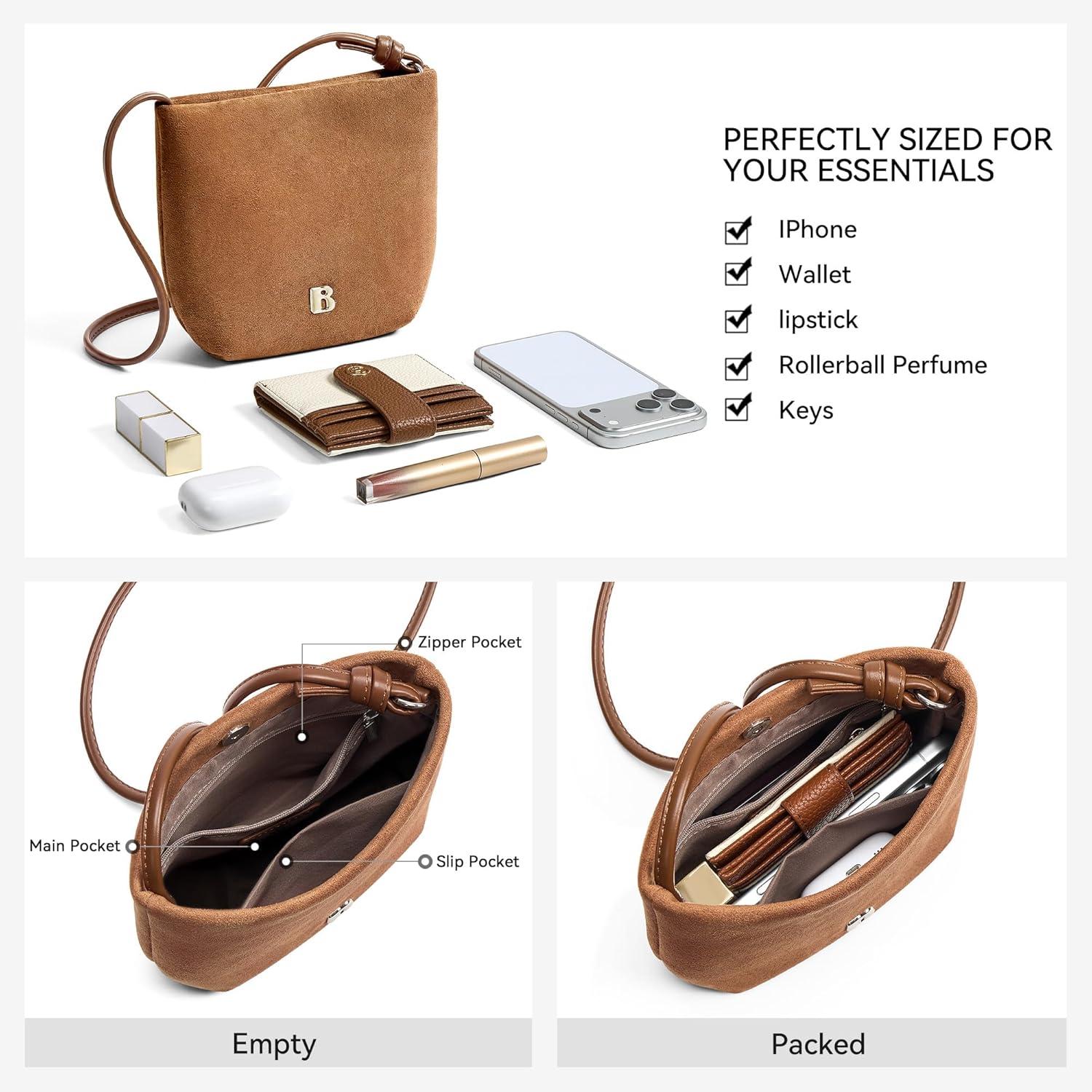 BOSTANTEN Small Crossbody Bags for Women Suede Leather Mini Cell Phone Cross Body Purses for Everyday Use(Camel)