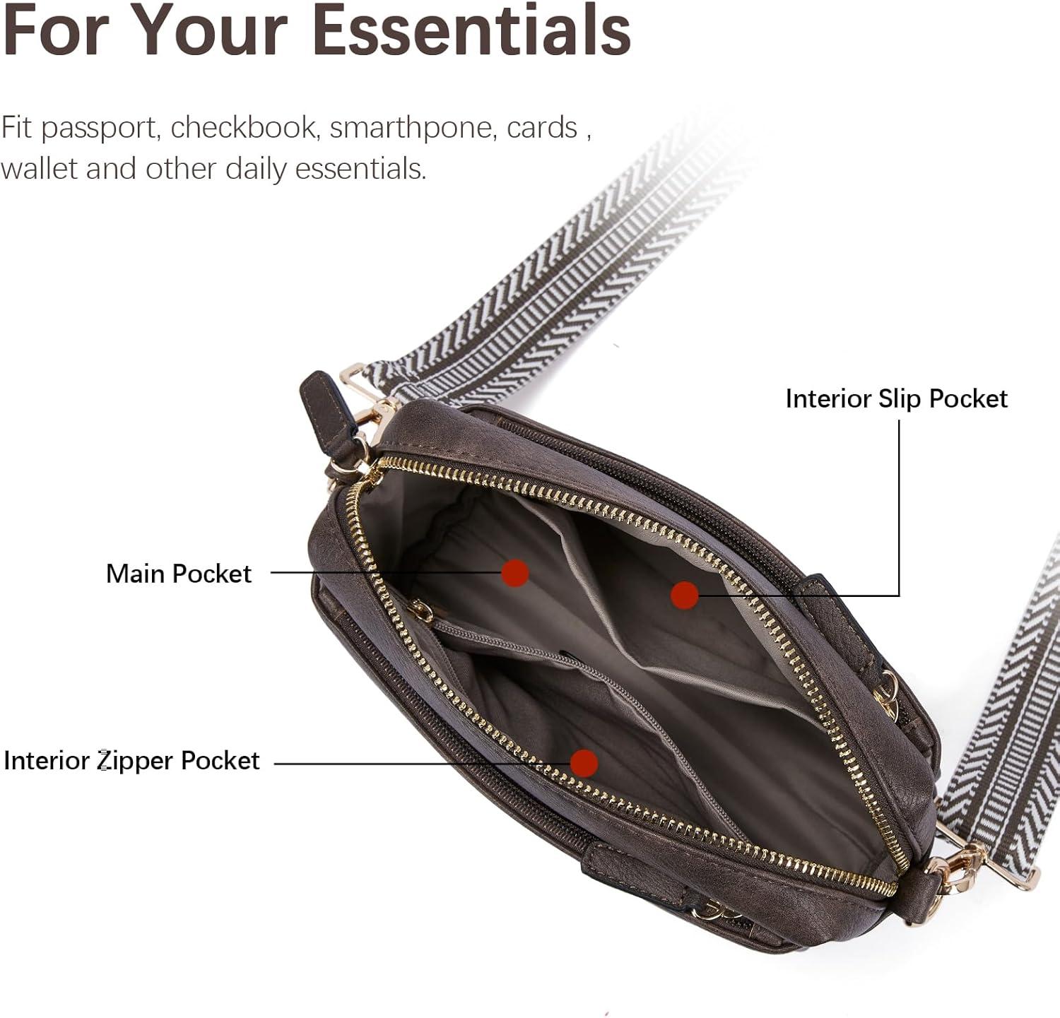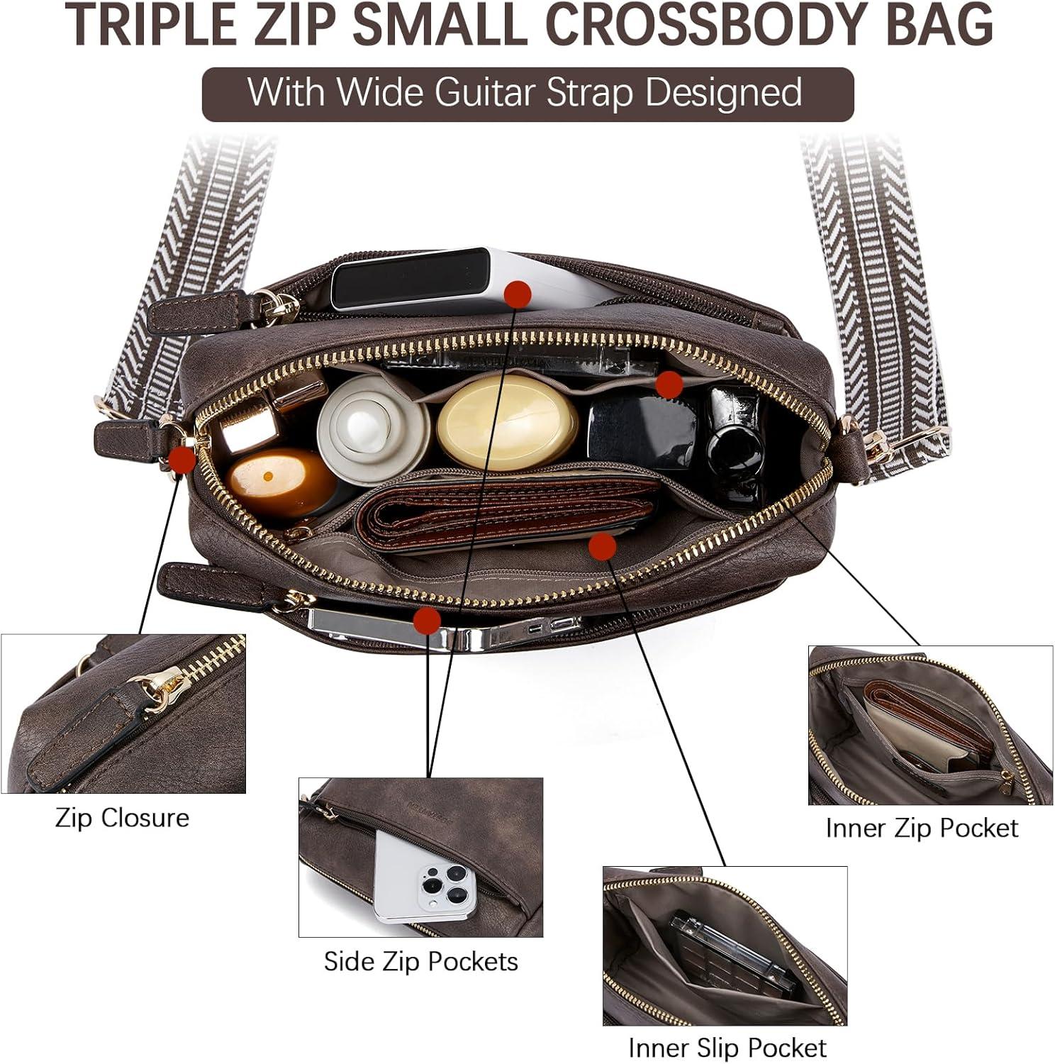 imageBOSTANTEN Small Crossbody Purse for Women Triple Zip Cell Phone Leather Handbag with Colored Shoulder StrapCoffee