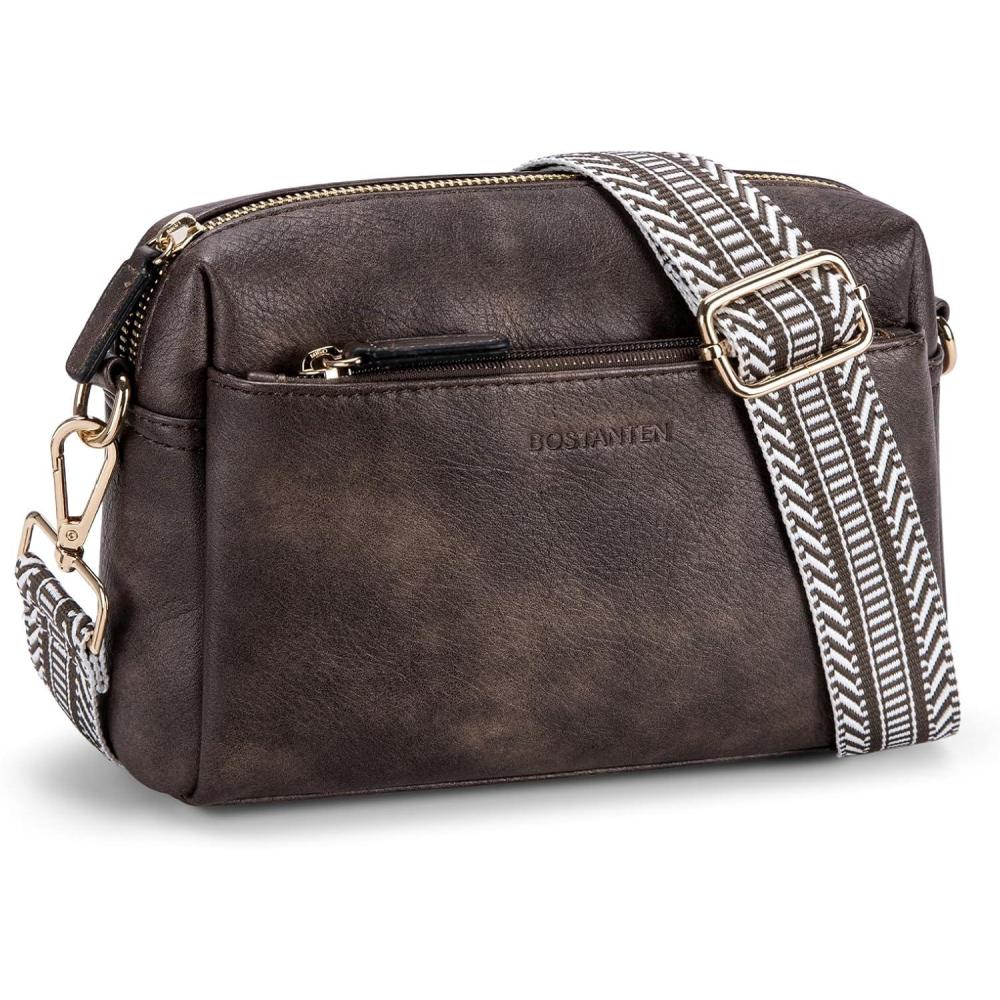 imageBOSTANTEN Small Crossbody Purse for Women Triple Zip Cell Phone Leather Handbag with Colored Shoulder StrapBrown