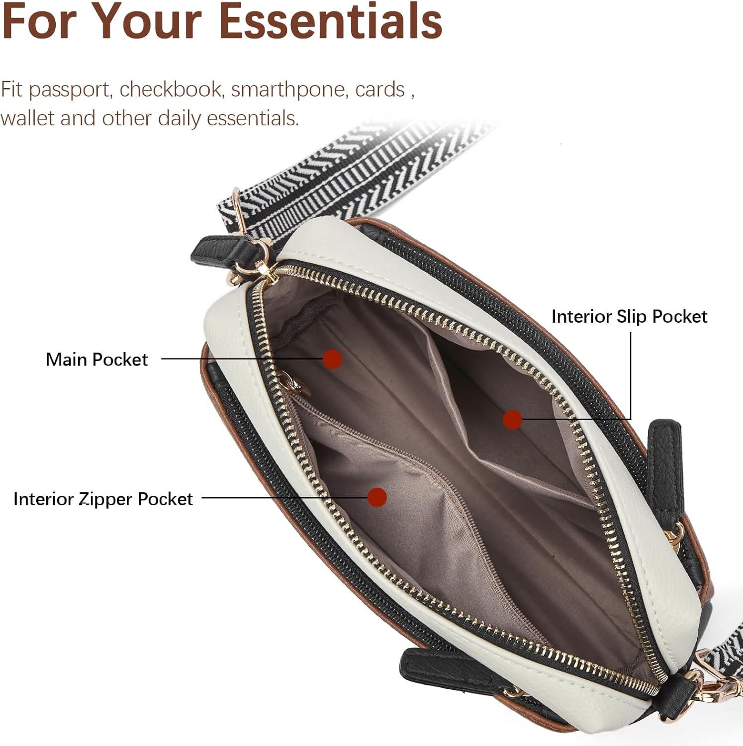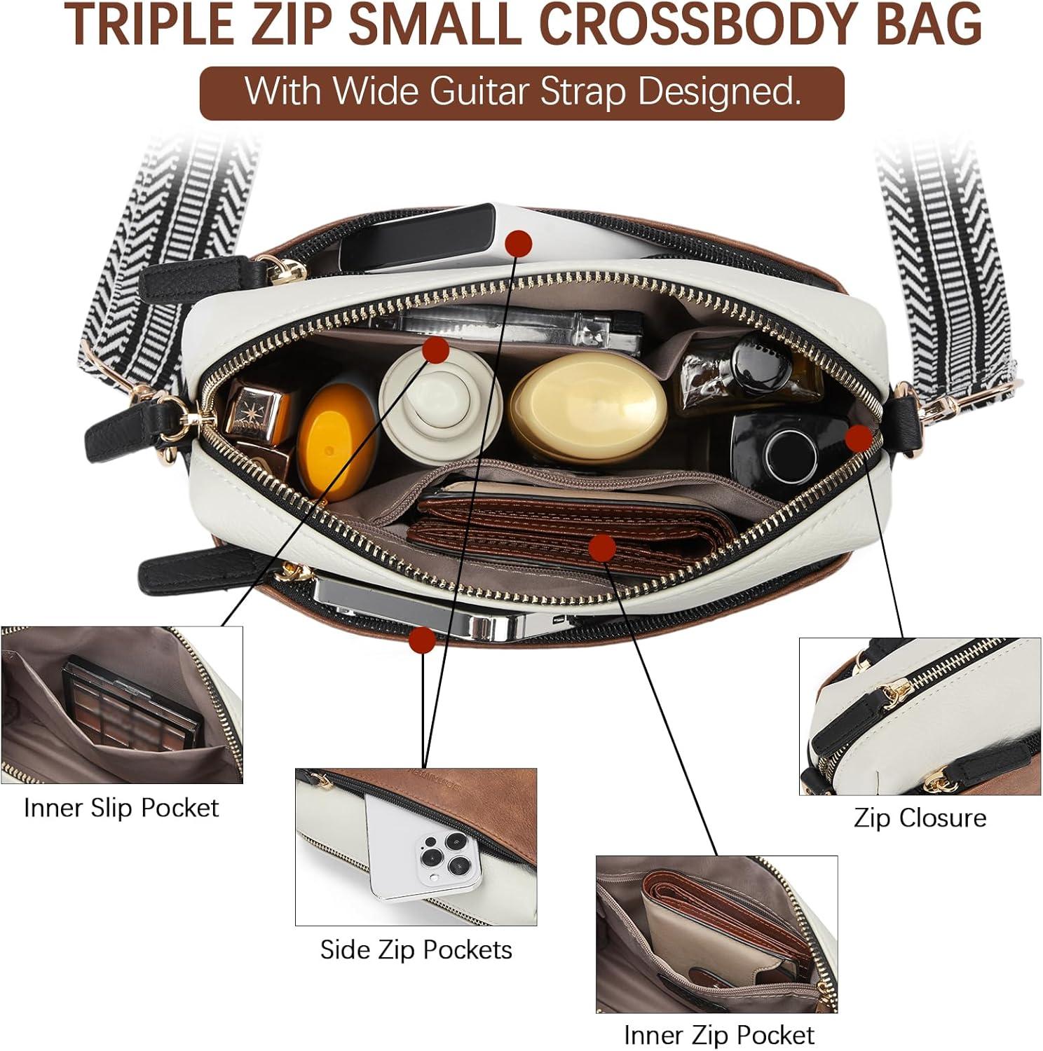 imageBOSTANTEN Small Crossbody Purse for Women Triple Zip Cell Phone Leather Handbag with Colored Shoulder StrapP04brown With Black