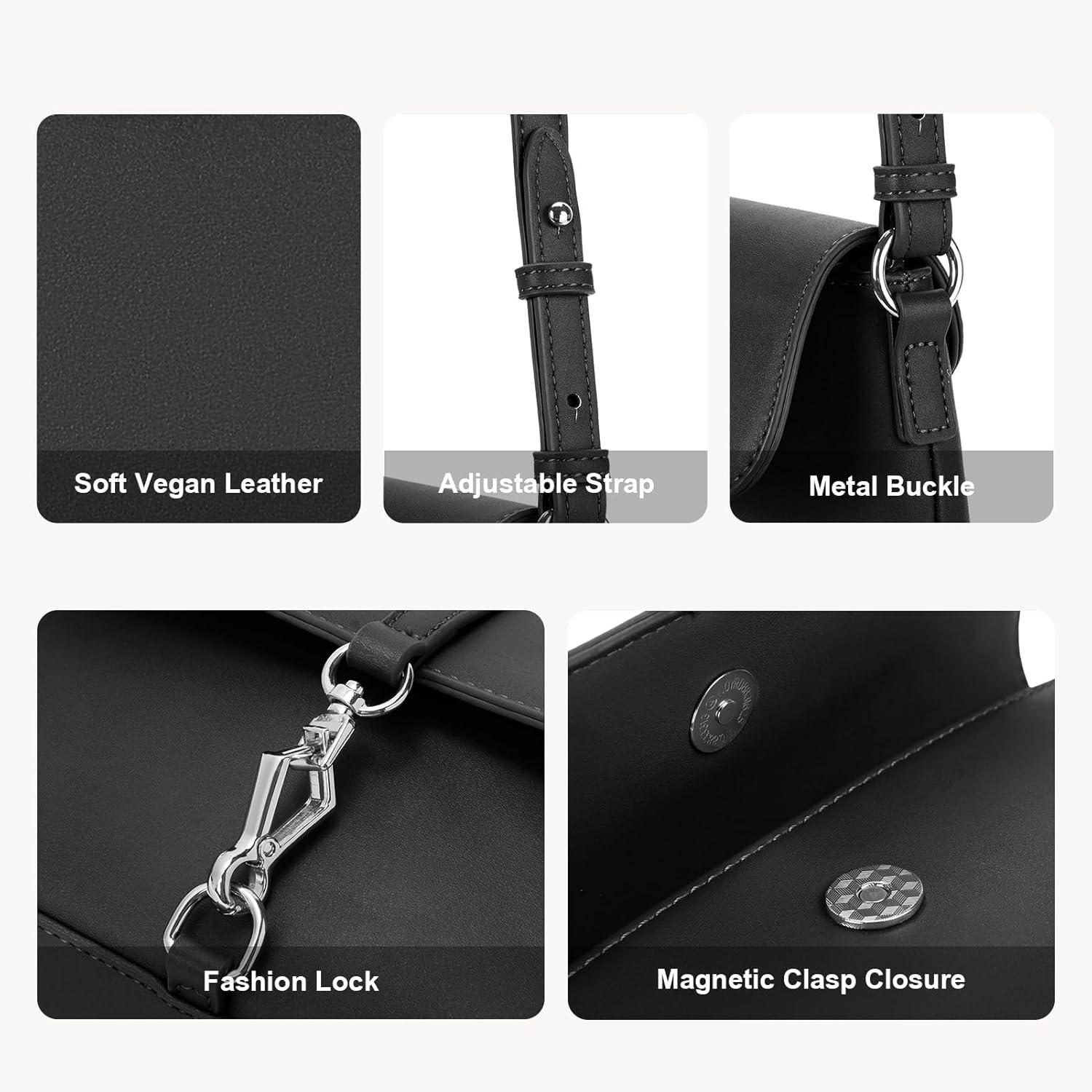 imageBOSTANTEN Small Purses for Women Trendy Leather Shoulder Bag with Adjustable StrapBlack