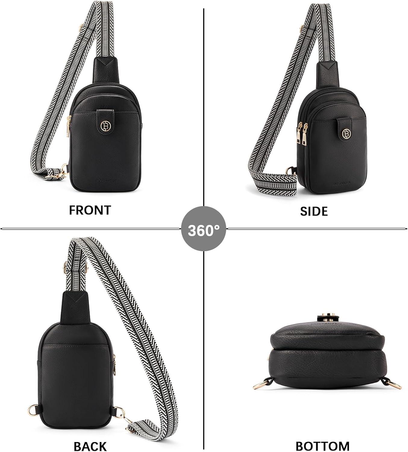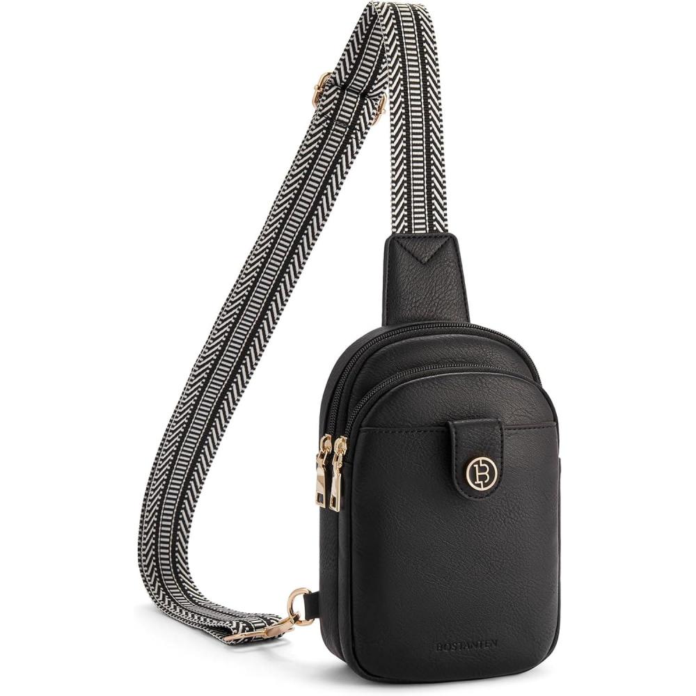 imageBOSTANTEN Small Sling Bag Crossbody Bags for Women Trendy Crossbody Purse Leather Chest BagAblack