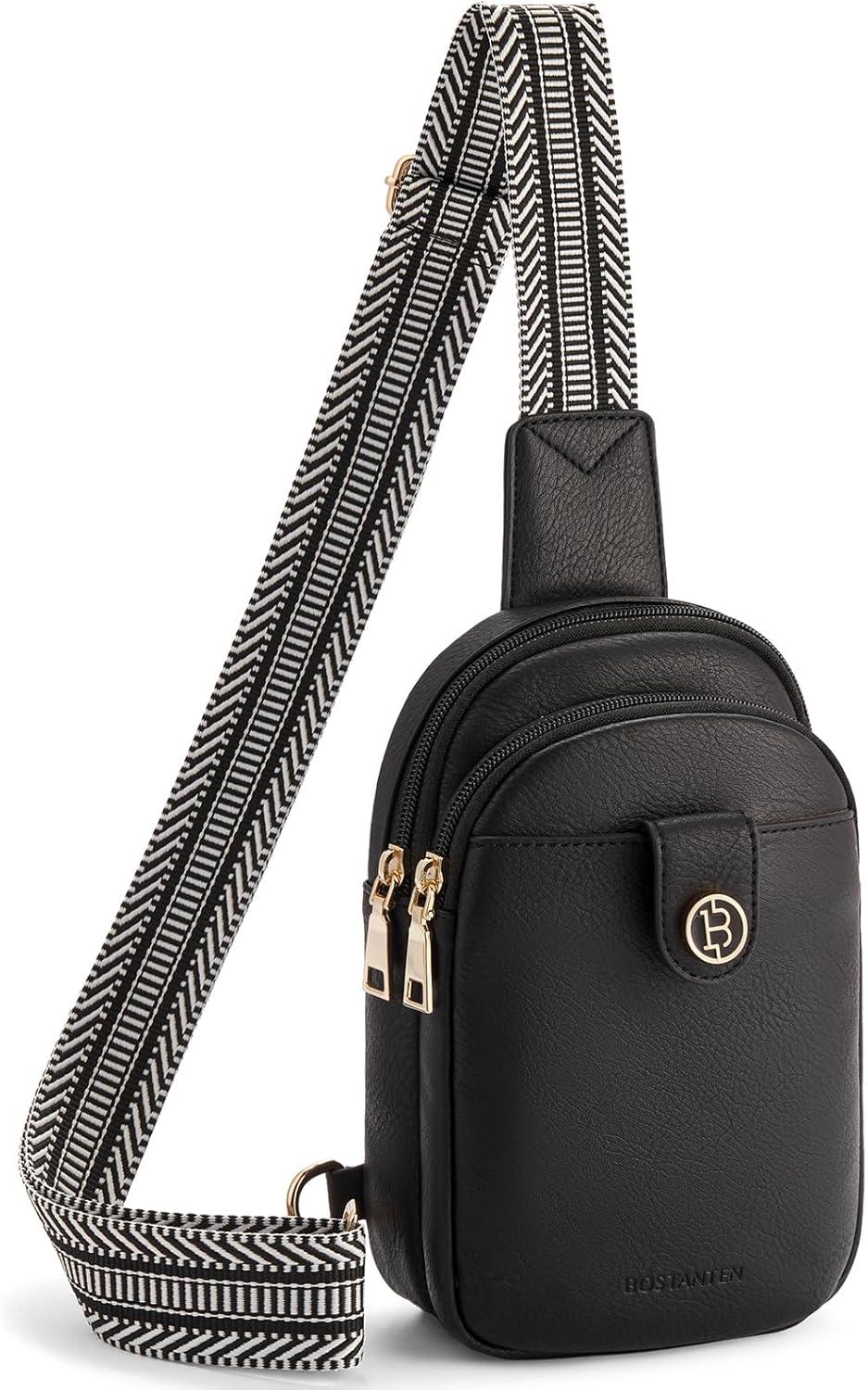 BOSTANTEN Small Sling Bag Crossbody Bags for Women Trendy Crossbody Purse Leather Chest Bag(A-black)