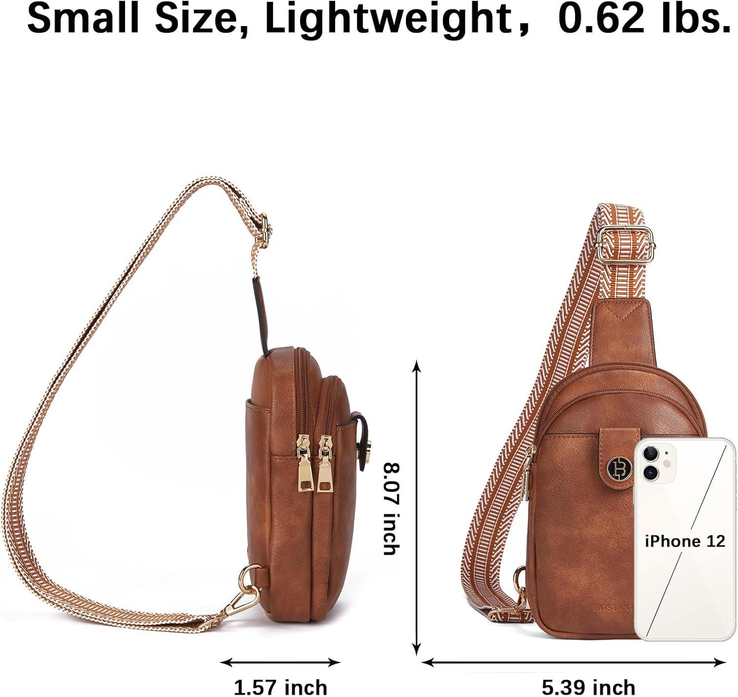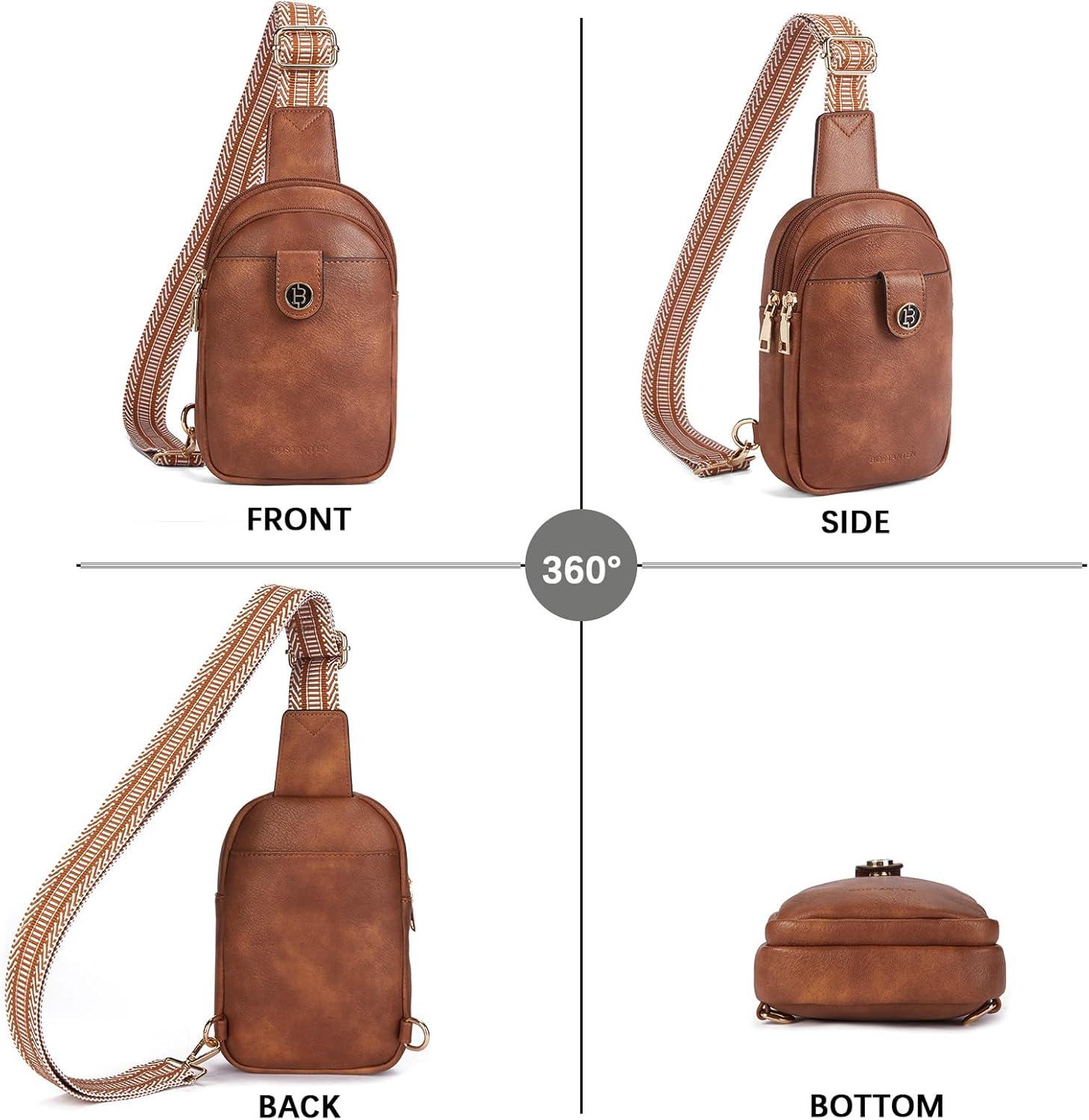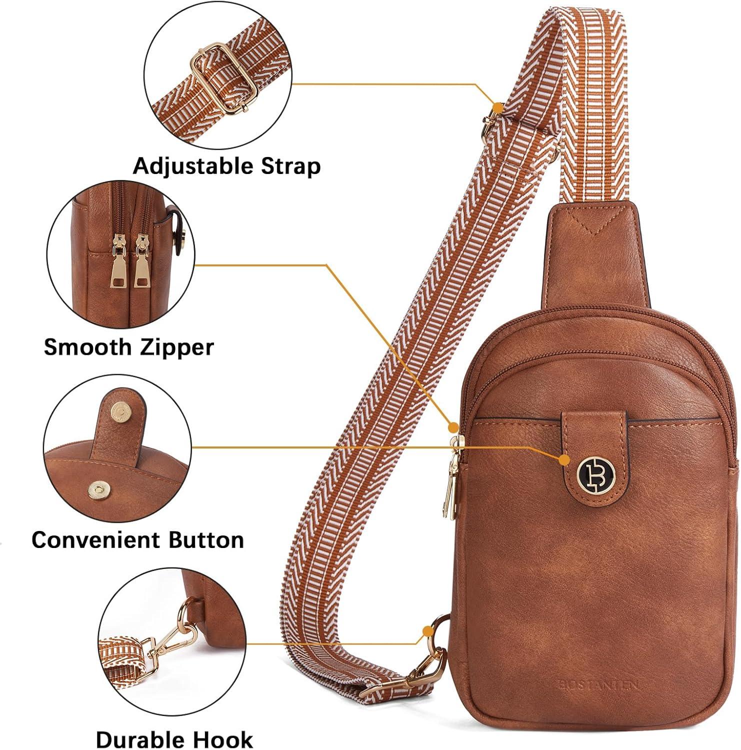 BOSTANTEN Small Sling Bag Crossbody Bags for Women Trendy Crossbody Purse Leather Chest Bag(A-brown)