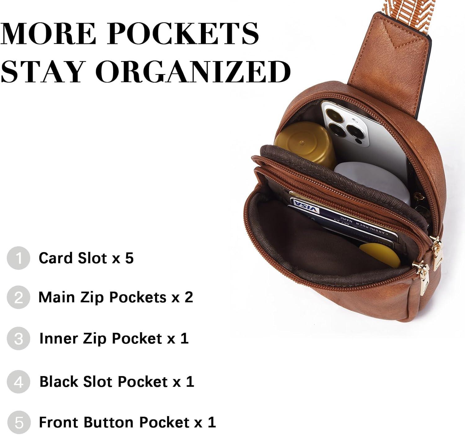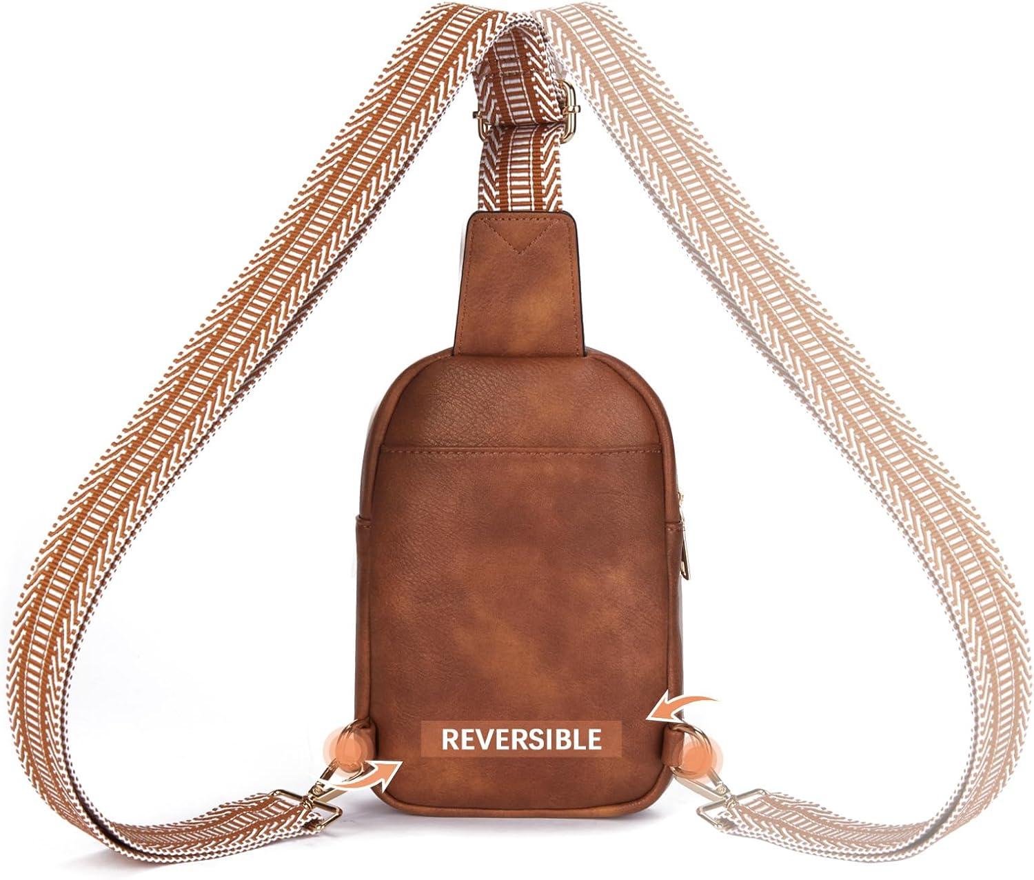 imageBOSTANTEN Small Sling Bag Crossbody Bags for Women Trendy Crossbody Purse Leather Chest BagAcamel Brown