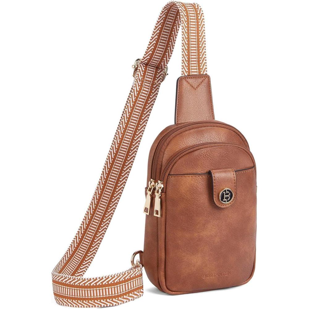 imageBOSTANTEN Small Sling Bag Crossbody Bags for Women Trendy Crossbody Purse Leather Chest BagAbrown