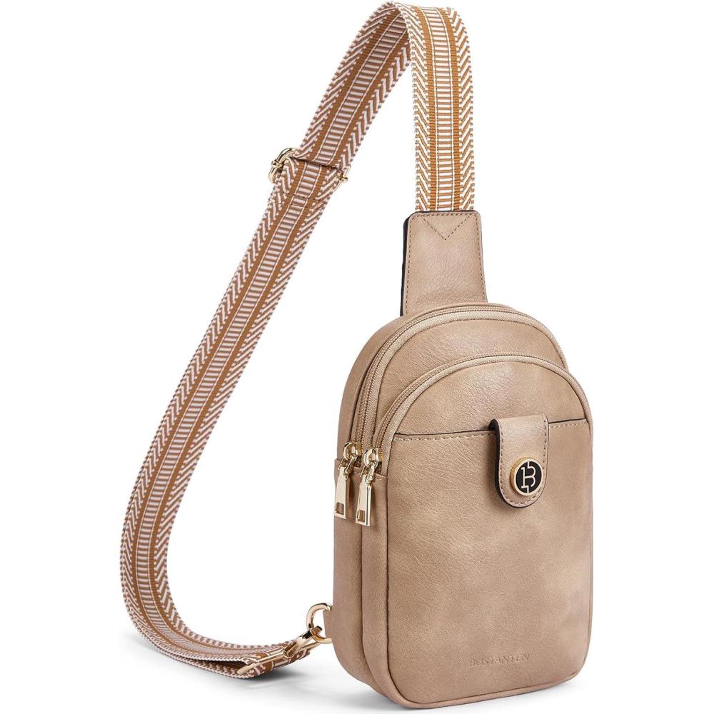 imageBOSTANTEN Small Sling Bag Crossbody Bags for Women Trendy Crossbody Purse Leather Chest BagAlight Brown