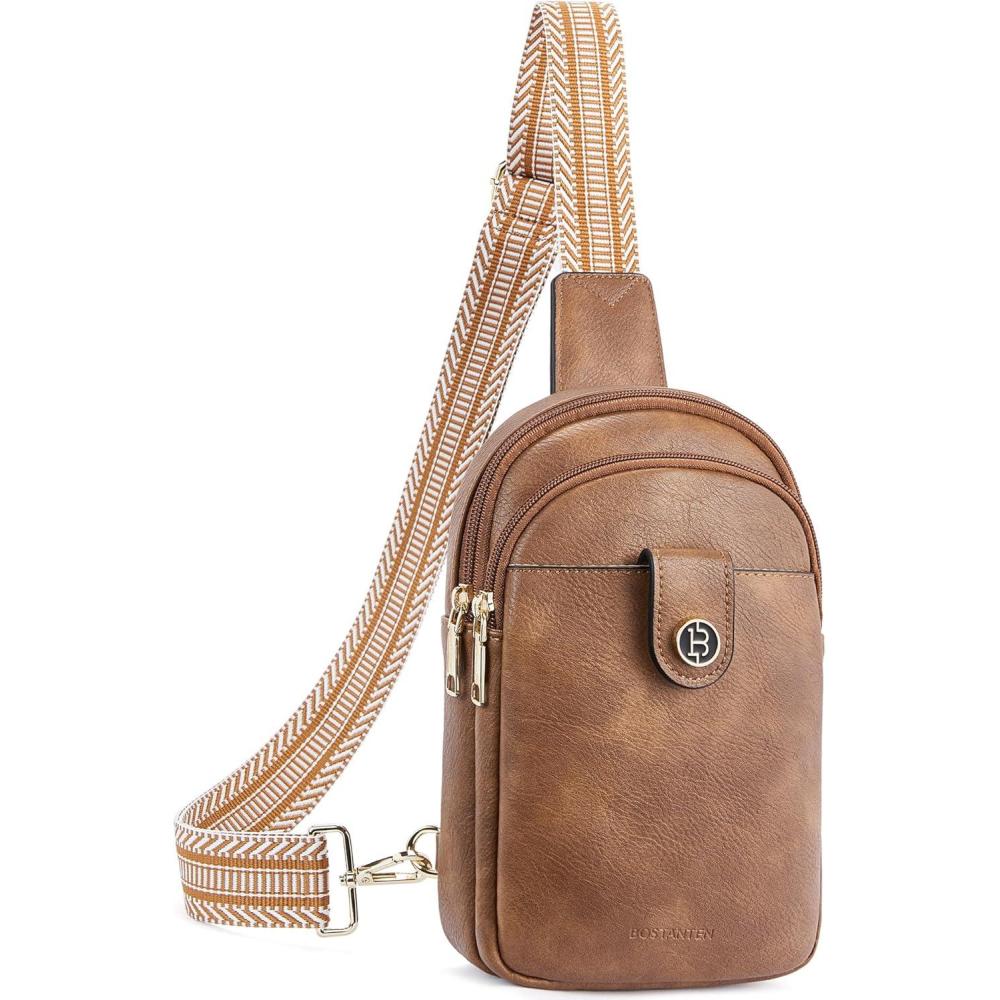 BOSTANTEN Small Sling Bag Crossbody Bags for Women Trendy Crossbody Purse Leather Chest Bag(B-camel Brown-large)