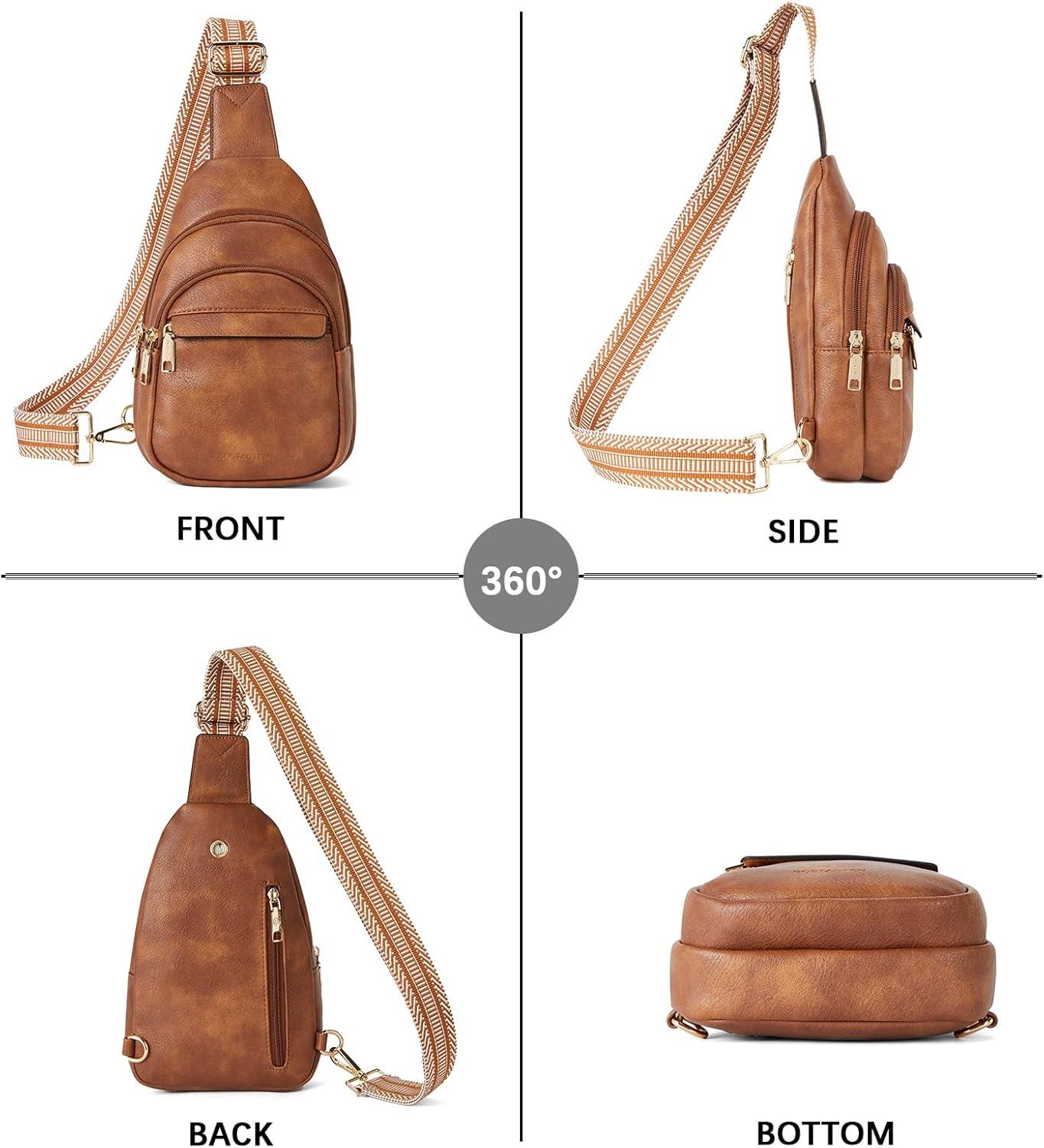 BOSTANTEN Small Sling Bag for Women Leather Crossbody Bags Fanny Pack Chest Bag for Travel(A-Camel Brown)
