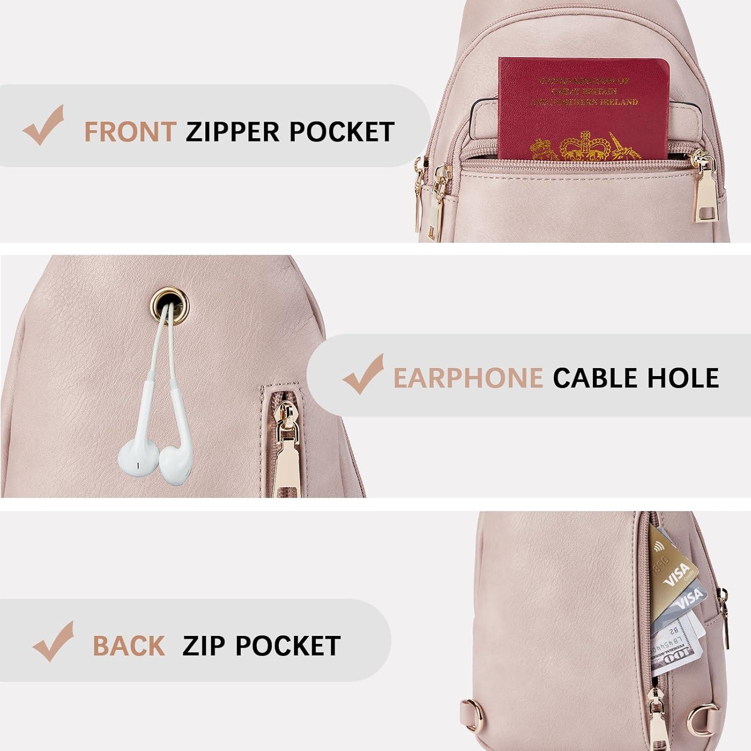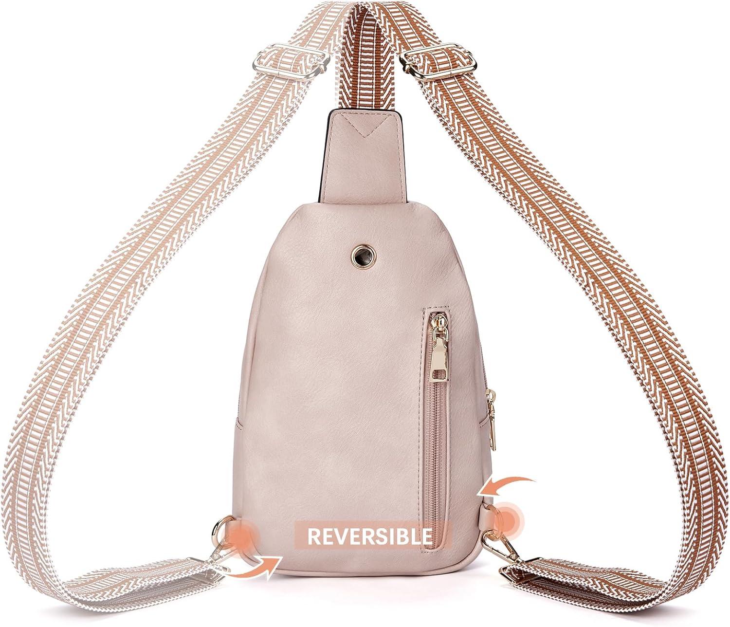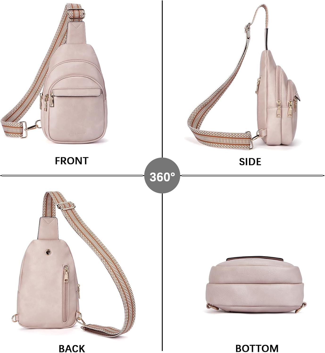 imageBOSTANTEN Small Sling Bag for Women Leather Crossbody Bags Fanny Pack Chest Bag for TravelAPink