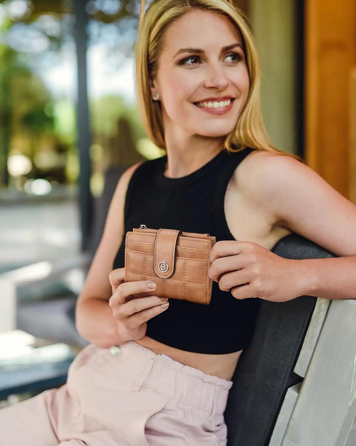 BOSTANTEN Small Sling Bag for Women Leather Crossbody Bags & Small Wallet for Women Leather RFID Blocking Card Holder Bifold Compact Wallets With Zipper Coin Pocket Camel