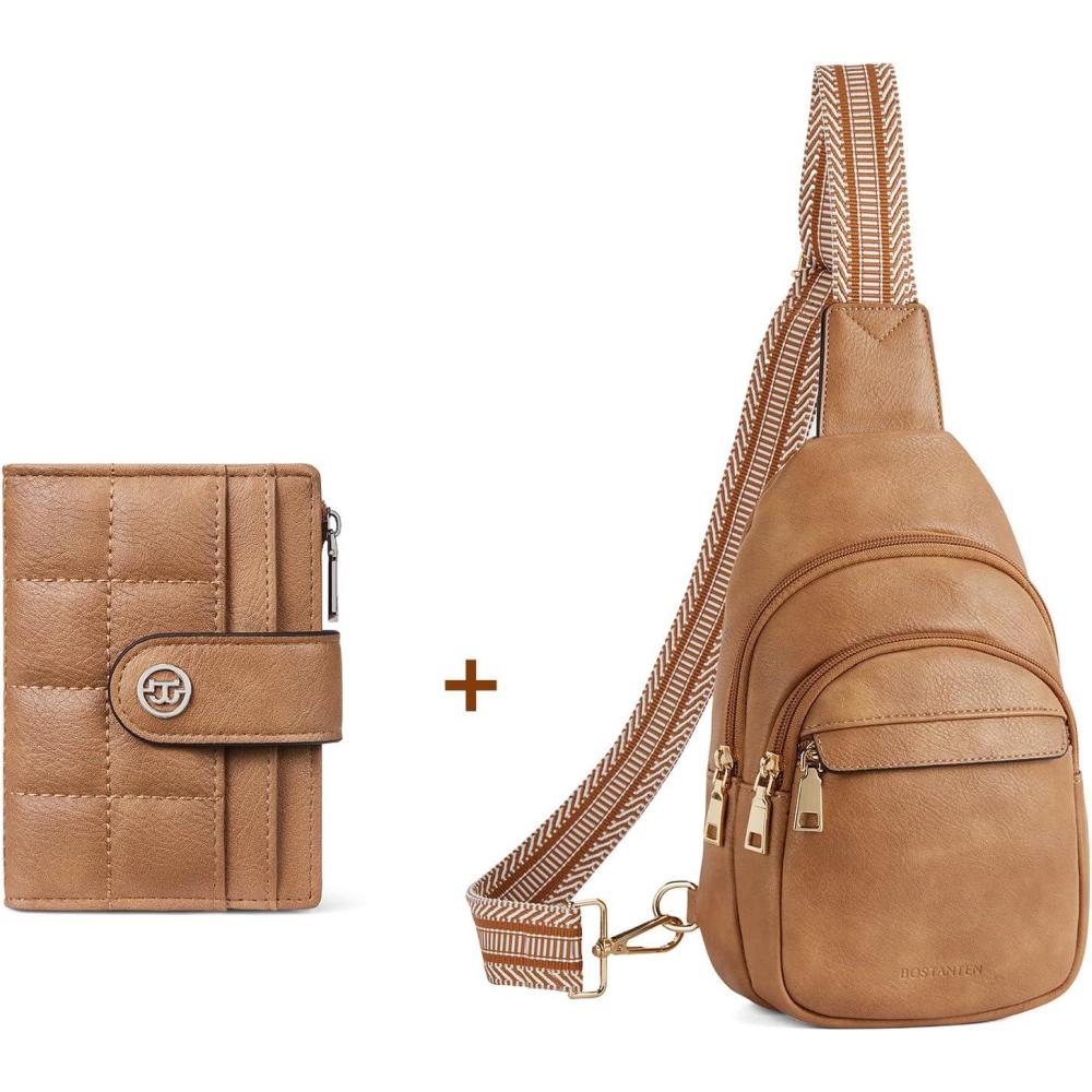 imageBOSTANTEN Small Sling Bag for Women Leather Crossbody Bags ampamp Small Wallet for Women Leather RFID Blocking Card Holder Bifold Compact Wallets With Zipper Coin Pocket Camel
