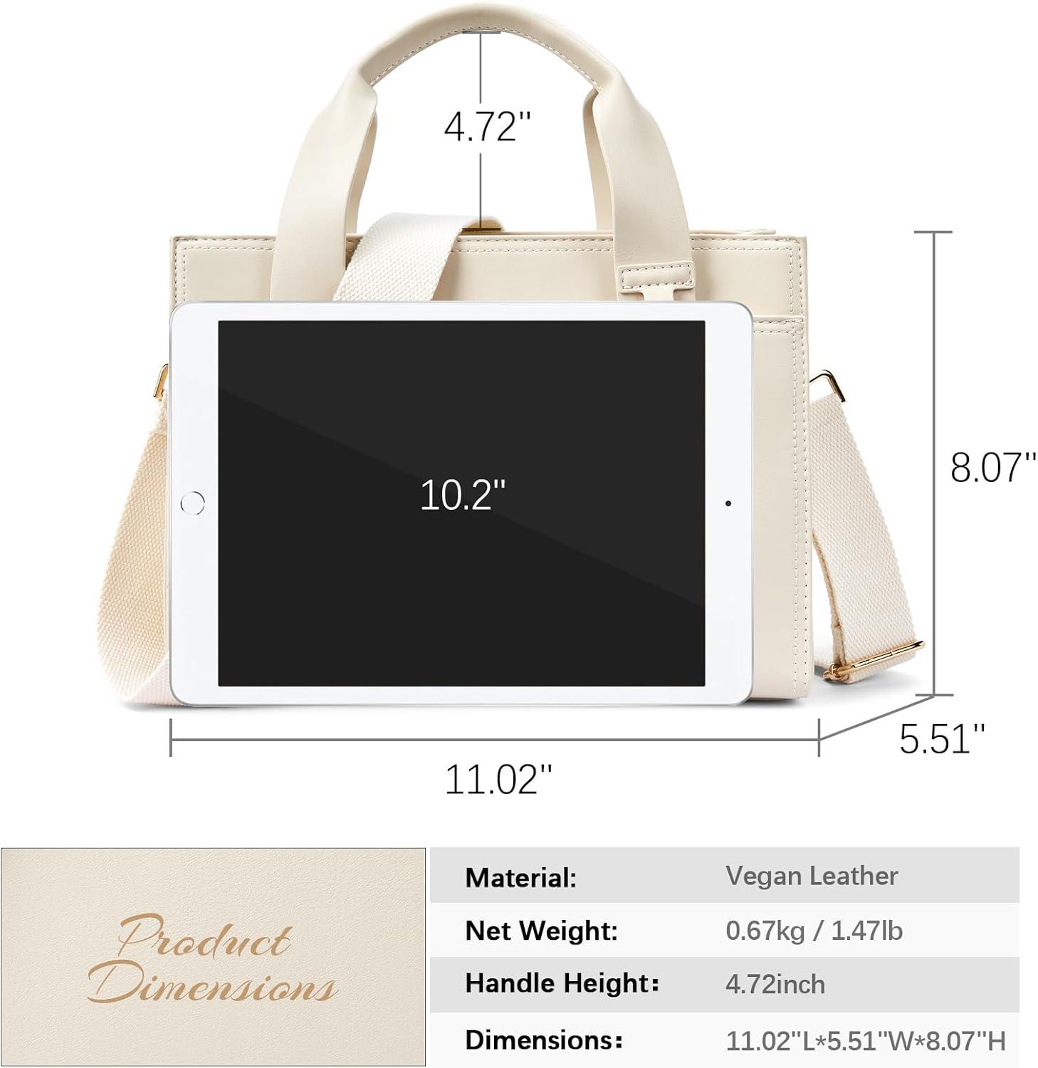 imageBOSTANTEN Small Tote Bag for Women Crossbody Trendy Purses Vegan Leather Satchel Handbags with Shoulder StrapBeige