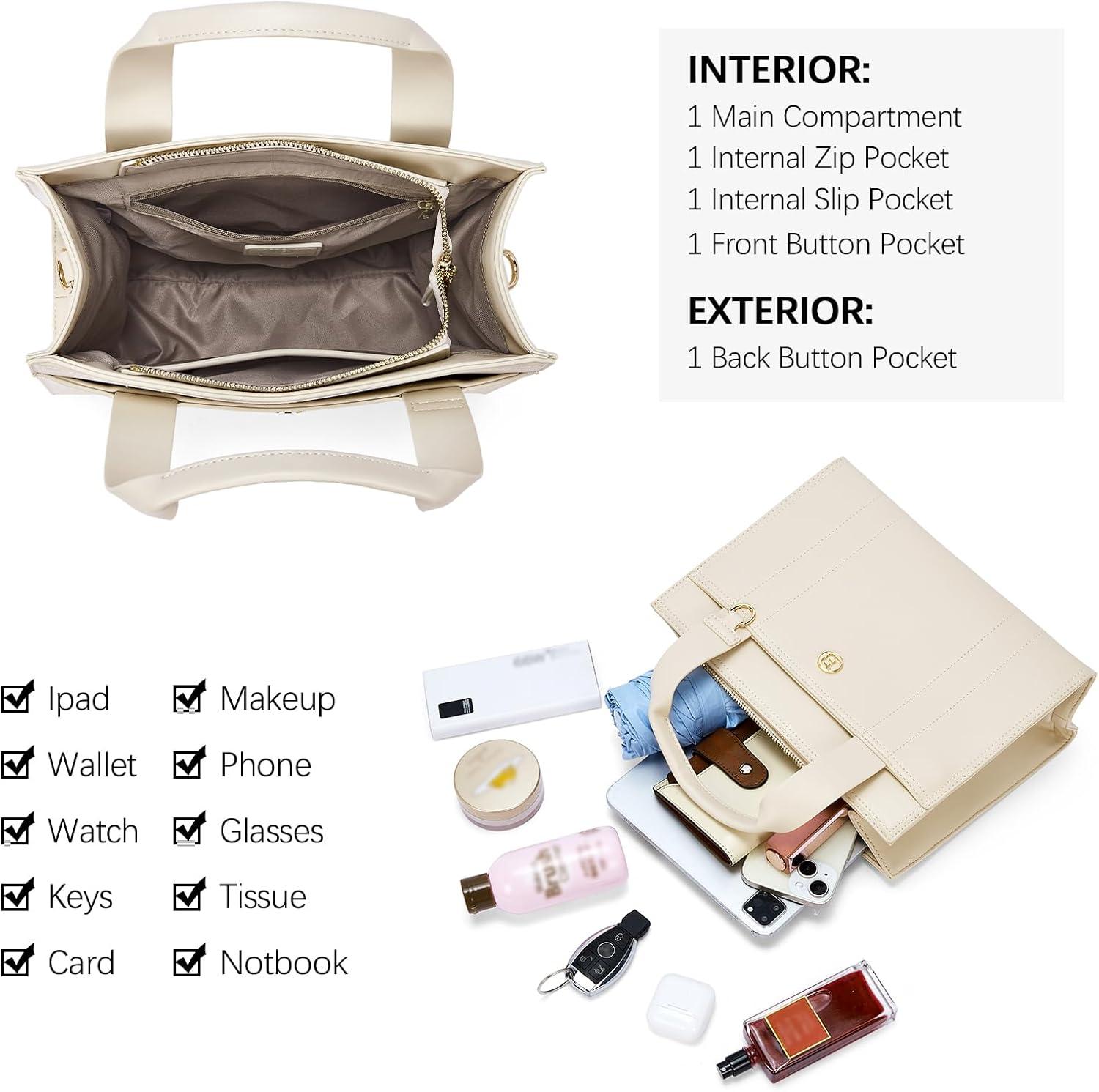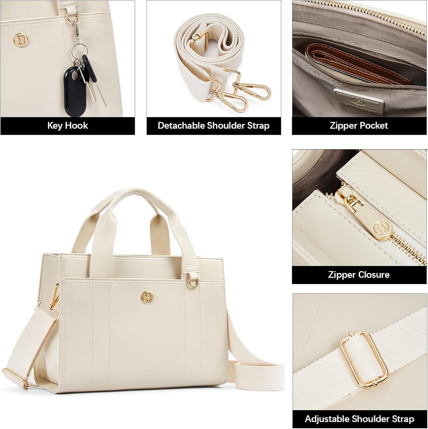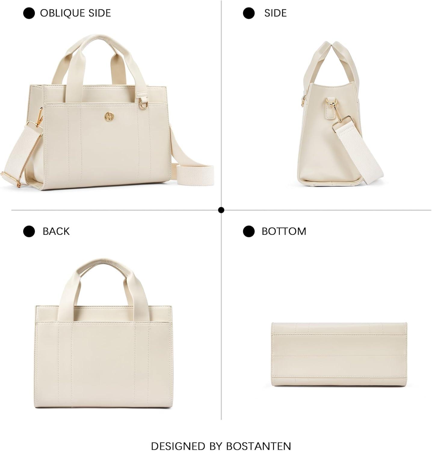 BOSTANTEN Small Tote Bag for Women Crossbody Trendy Purses Vegan Leather Satchel Handbags with Shoulder Strap(Beige)
