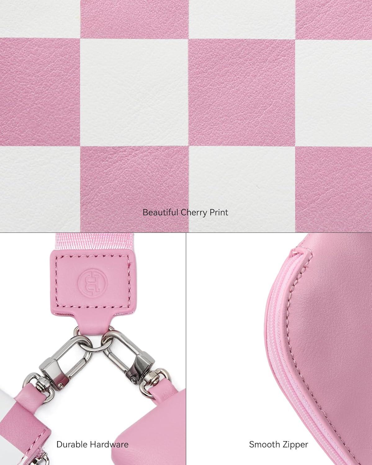 BOSTANTEN Small Wallet Checkered, Wristlet Wallets for Women RFID Detachable Dual Pouch Keychain Wristlet Wallet Cute Coin Purse, Black and White(A-Cherry Print)