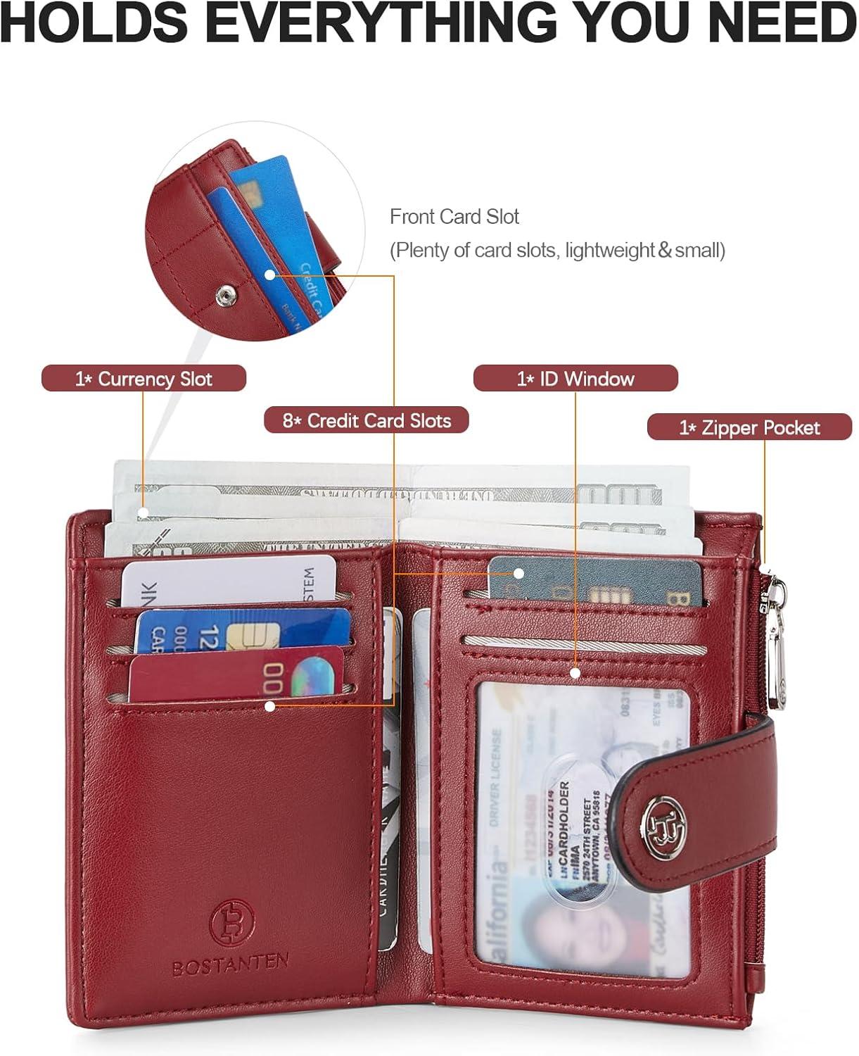 imageBOSTANTEN Small Wallet for Women Leather RFID Blocking Card Holder Bifold Compact Wallets With Zipper Coin Pocket BrownBeigeBlackPU LeahterWine Red