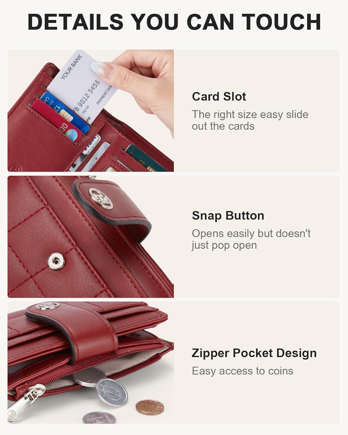 High-Grade Material: This small womens wallet is made of high quality durable vegan leather and upgraded fabric lining, sturdy, not easy to crack, and long-lasting. The “B” logo metal snap button and square quilted design make small wallets woman look more unique, outstanding, elegant, and timeless.