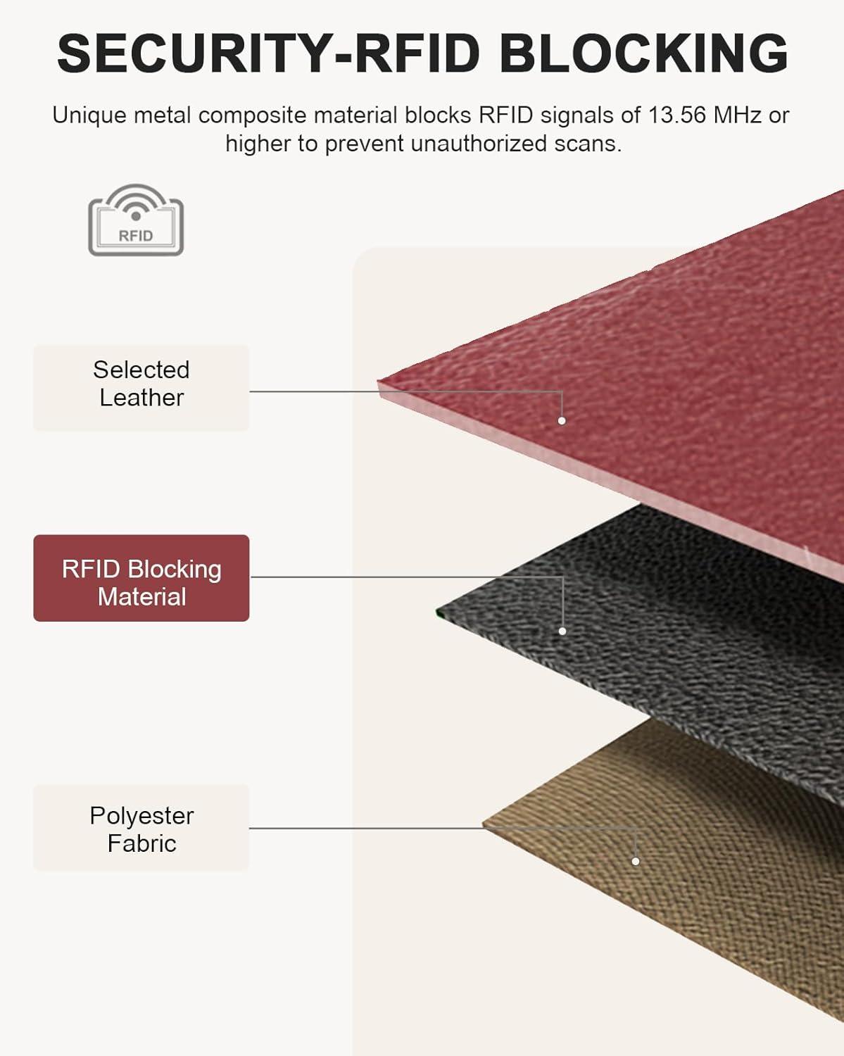 Rfid Blocking & Protection: The leather small wallet feature proprietary blocking material, which will block any RFID signals and protect your valuable private information from remote unauthorized access, keeping your personal and credit card details safe when traveling or when shopping.