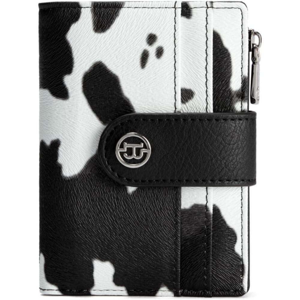 BOSTANTEN Small Wallet for Women Leather RFID Blocking Card Holder Bifold Compact Wallets With Zipper Coin Pocket Brown&Beige&Black(White Cow Print)