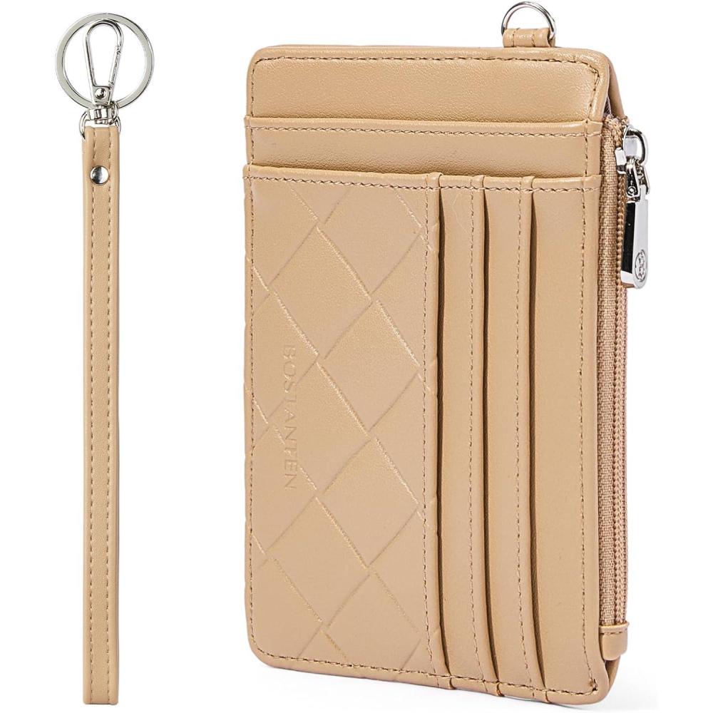 BOSTANTEN Small Wallet For Women RFID Leather Credit Card Holder Slim Wristlet Keychain Wallet With Zipper Pocket(Q-Khaki)