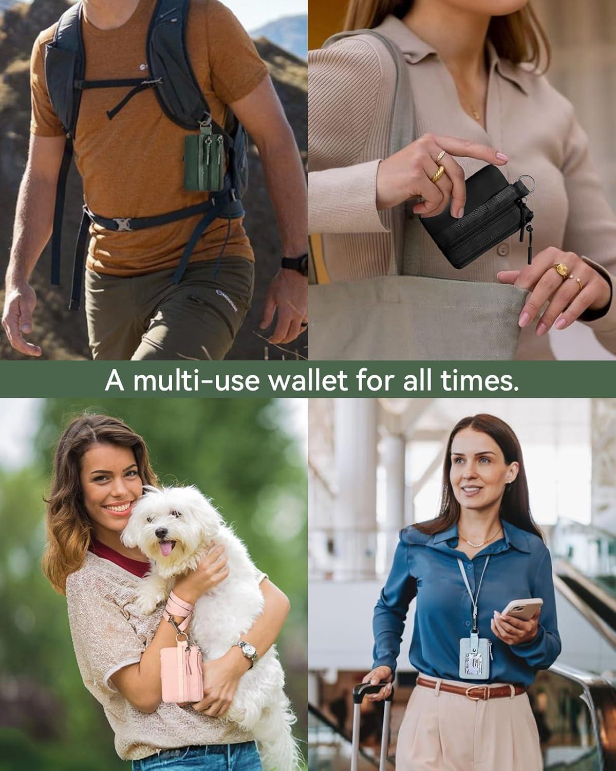 Versatile Everyday Wallet: Take the keychain wallet with you to daily commuting to work, outdoor sports or traveling. ID wallet comes with a detachable long lanyard and can also be used as a neck wallet or wristlet wallet. Even without the lanyard, this simple wallet fits in your pocket or bag. Minimalist wallets make you less to think about and more about enjoying the moment.