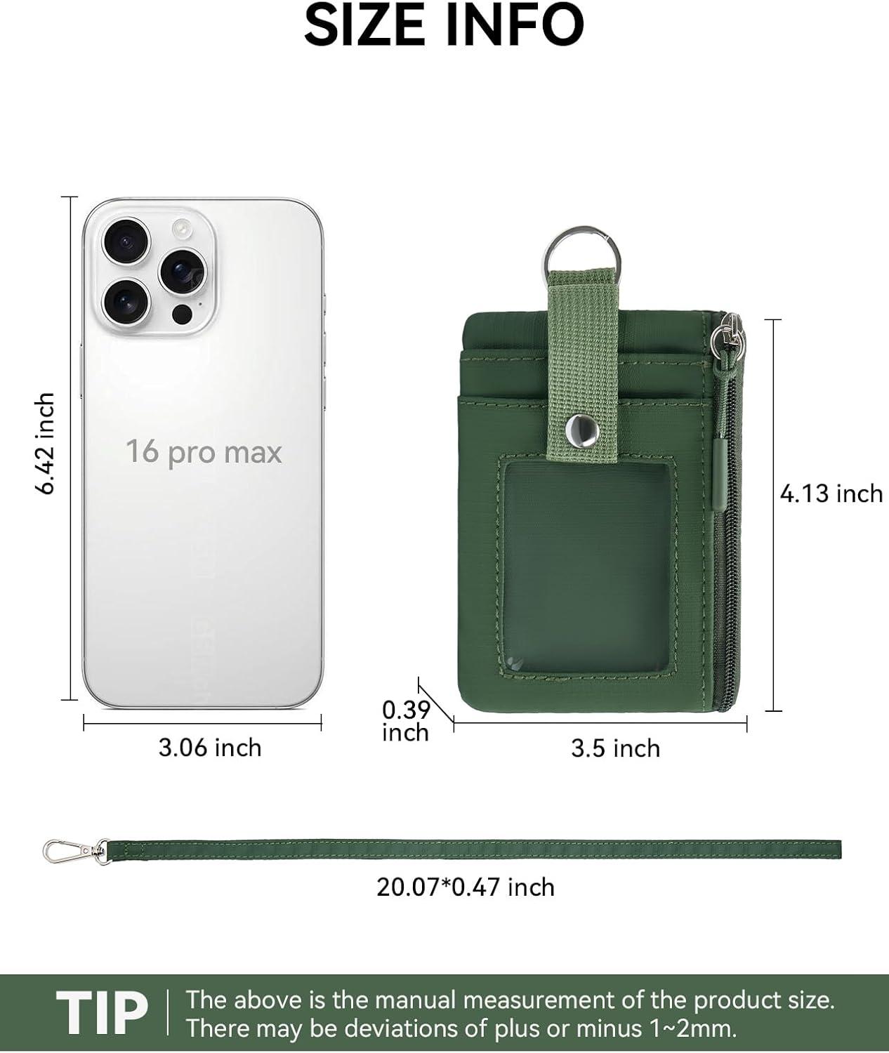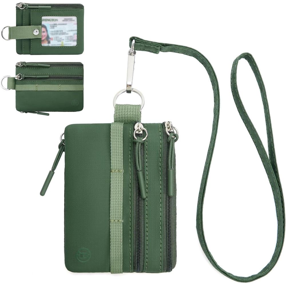 imageBOSTANTEN Small Wallet RFID Minimalist Zip ID Case Wallet with Lanyard Keychain Water Resistant Card Wallets for Women ampamp Men BlackGreen