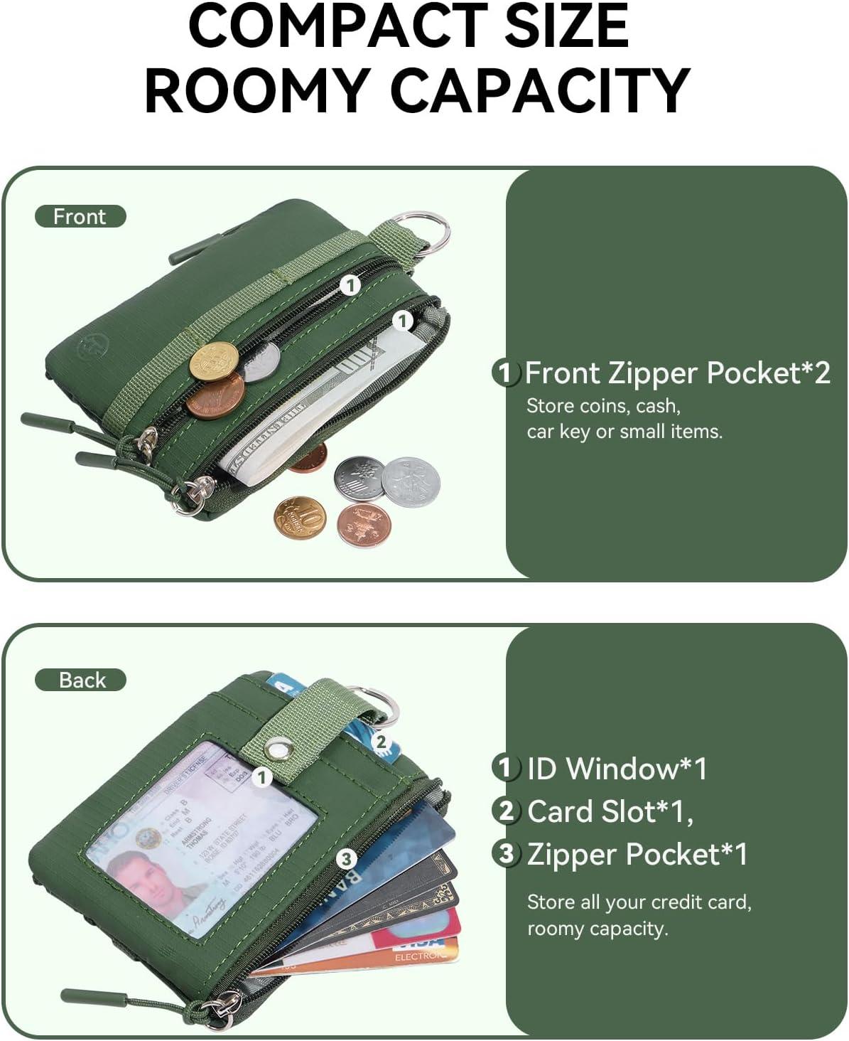 Water Resistant and Durable: This daily wallet is made of water-resistant and heavy-duty rip-stop nylon fabric which is lightweight and durable. The zipper is smooth and the zipper pocket always stay closed, so the items won't fall out, keeping your items safe. External strap design makes it easy to hang small items. Please note, the compact wallet cannot be fully immersed in water, and it is not suitable for water sports such as diving and swimming.
