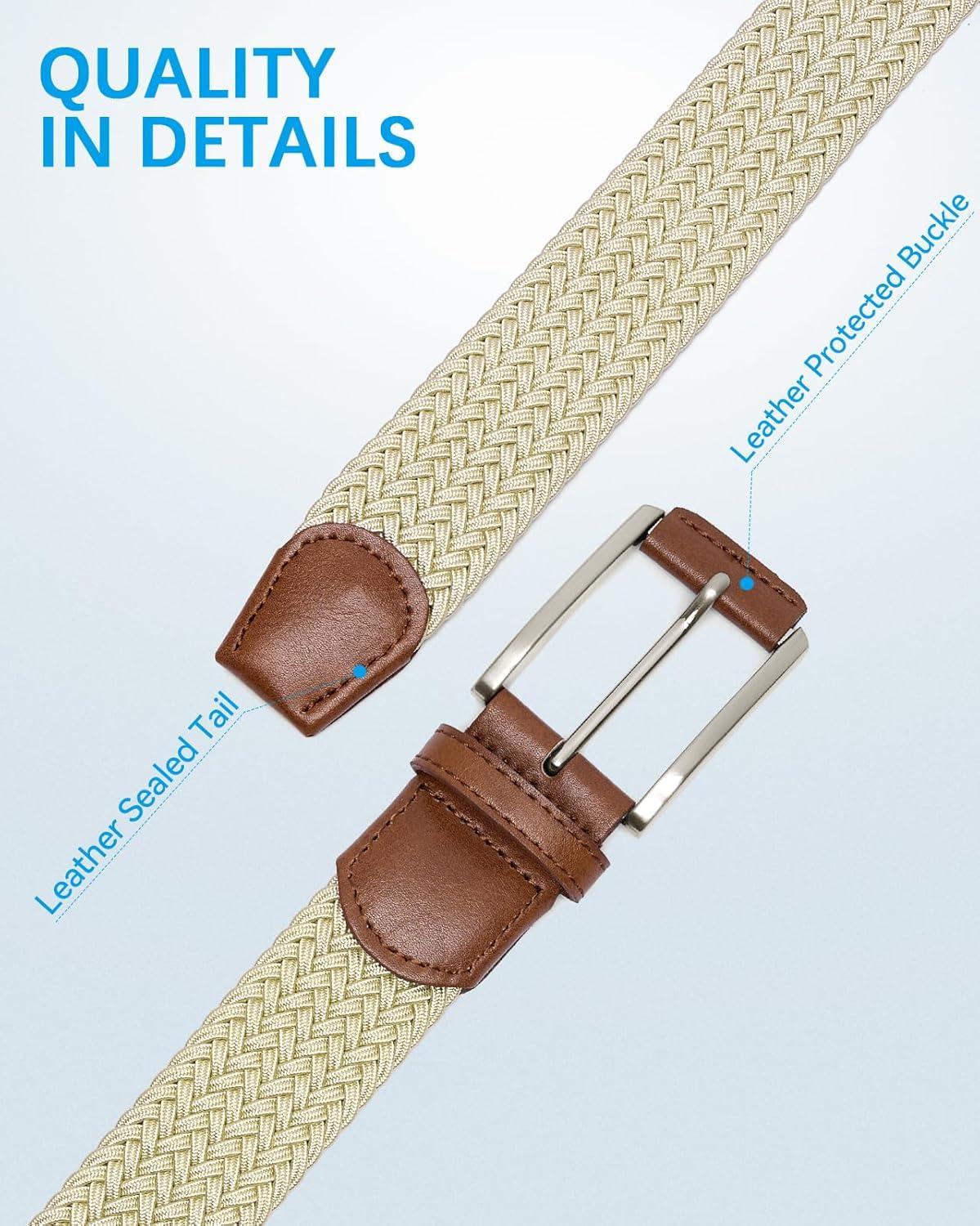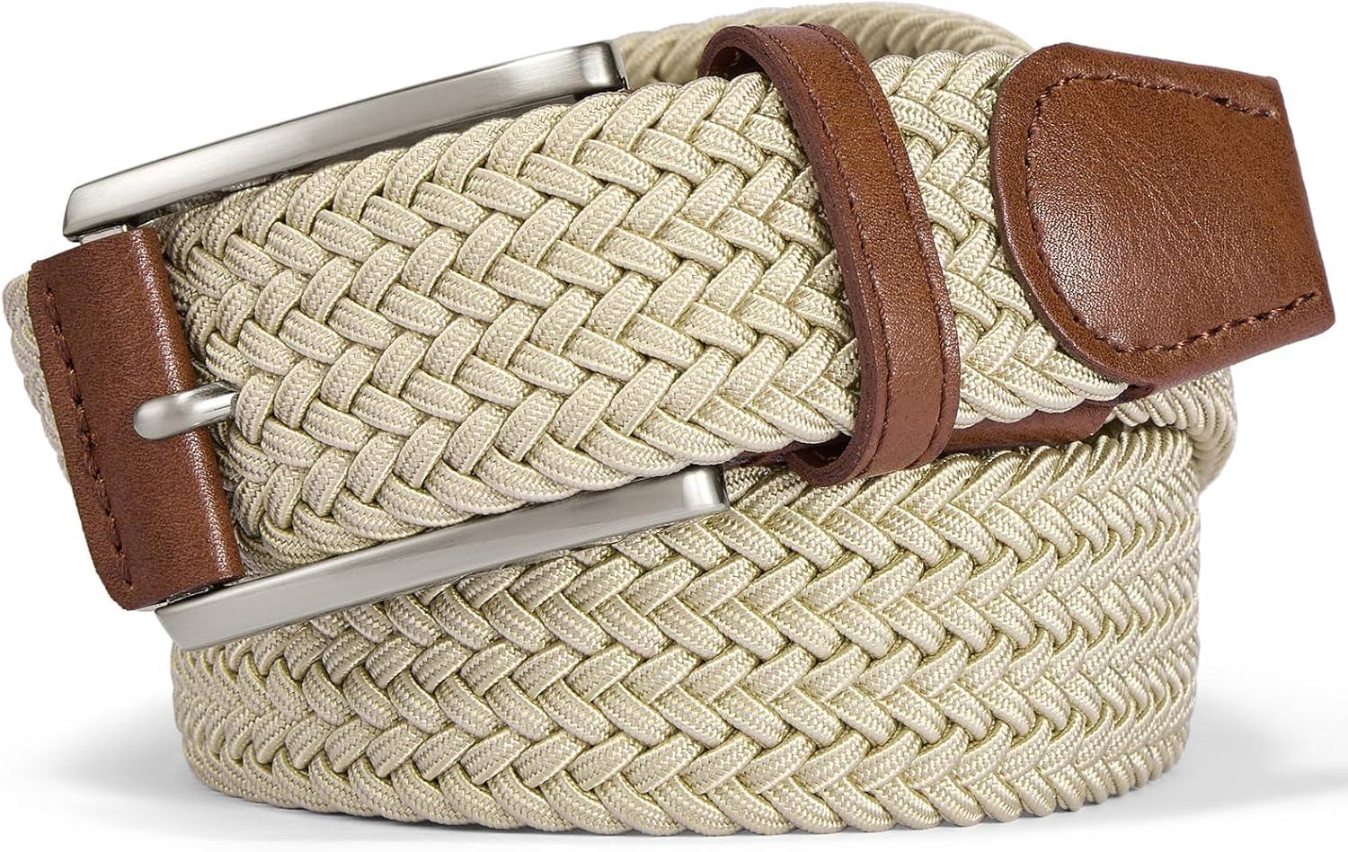 BOSTANTEN Stretch Belts for Men Braided Woven Belts Men 1 3/8", Gift for Golf Pants Casual Shorts Jeans(002-khaki)