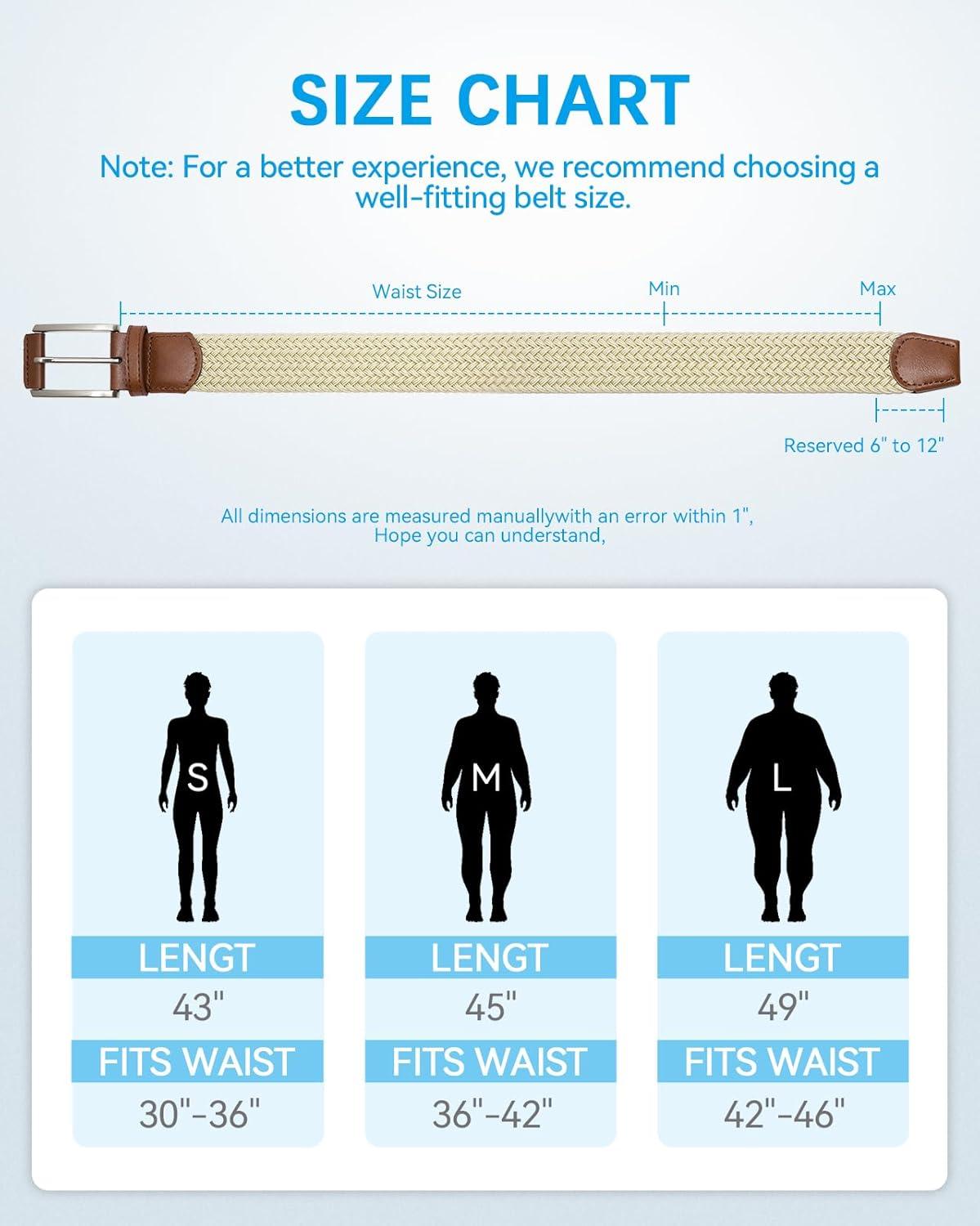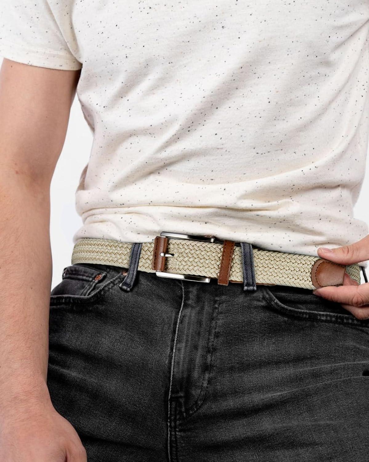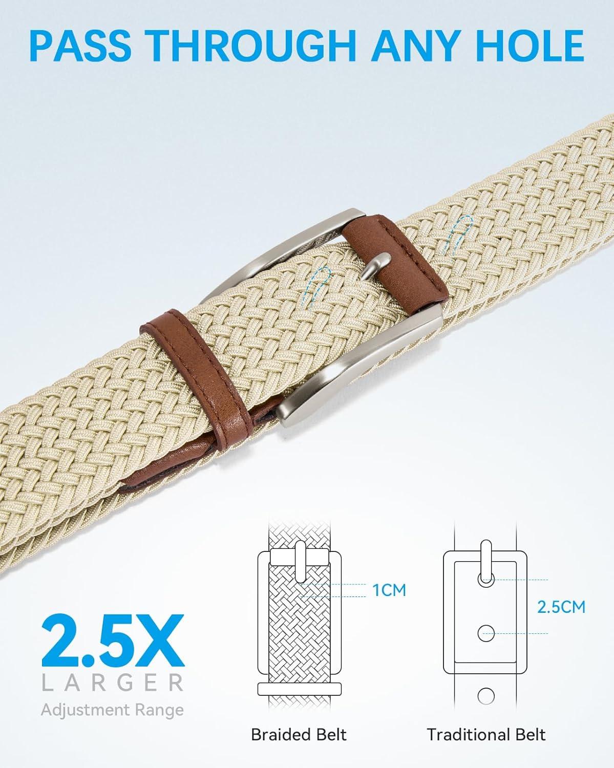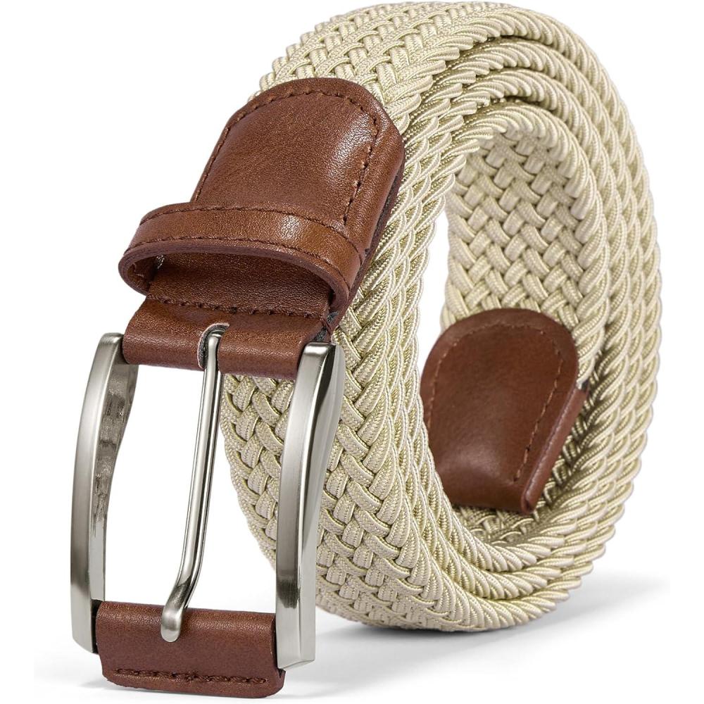 BOSTANTEN Stretch Belts for Men Braided Woven Belts Men 1 3/8″, Gift for Golf Pants Casual Shorts Jeans(002-khaki)