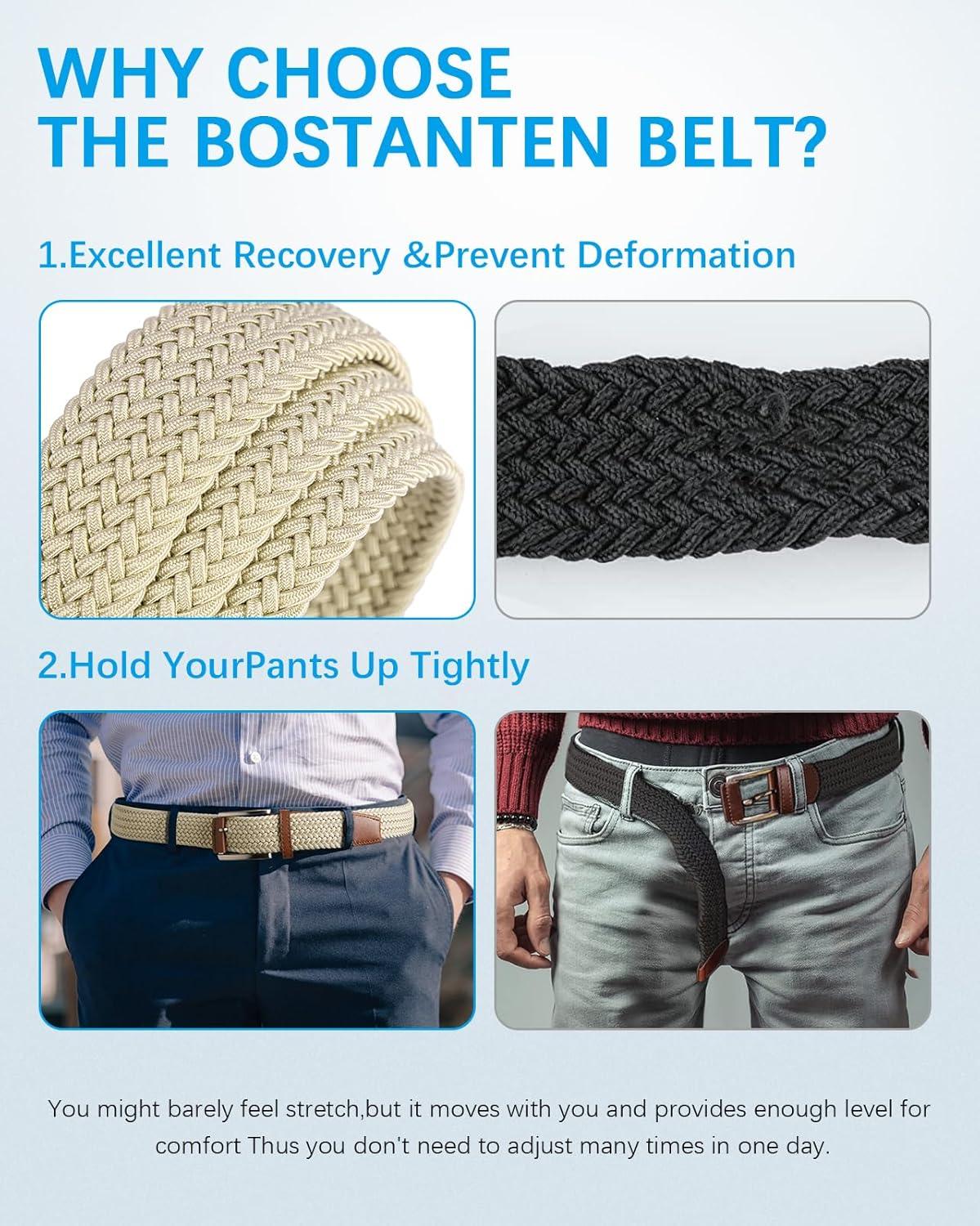 imageBOSTANTEN Stretch Belts for Men Braided Woven Belts Men 1 38quot Gift for Golf Pants Casual Shorts Jeans001black