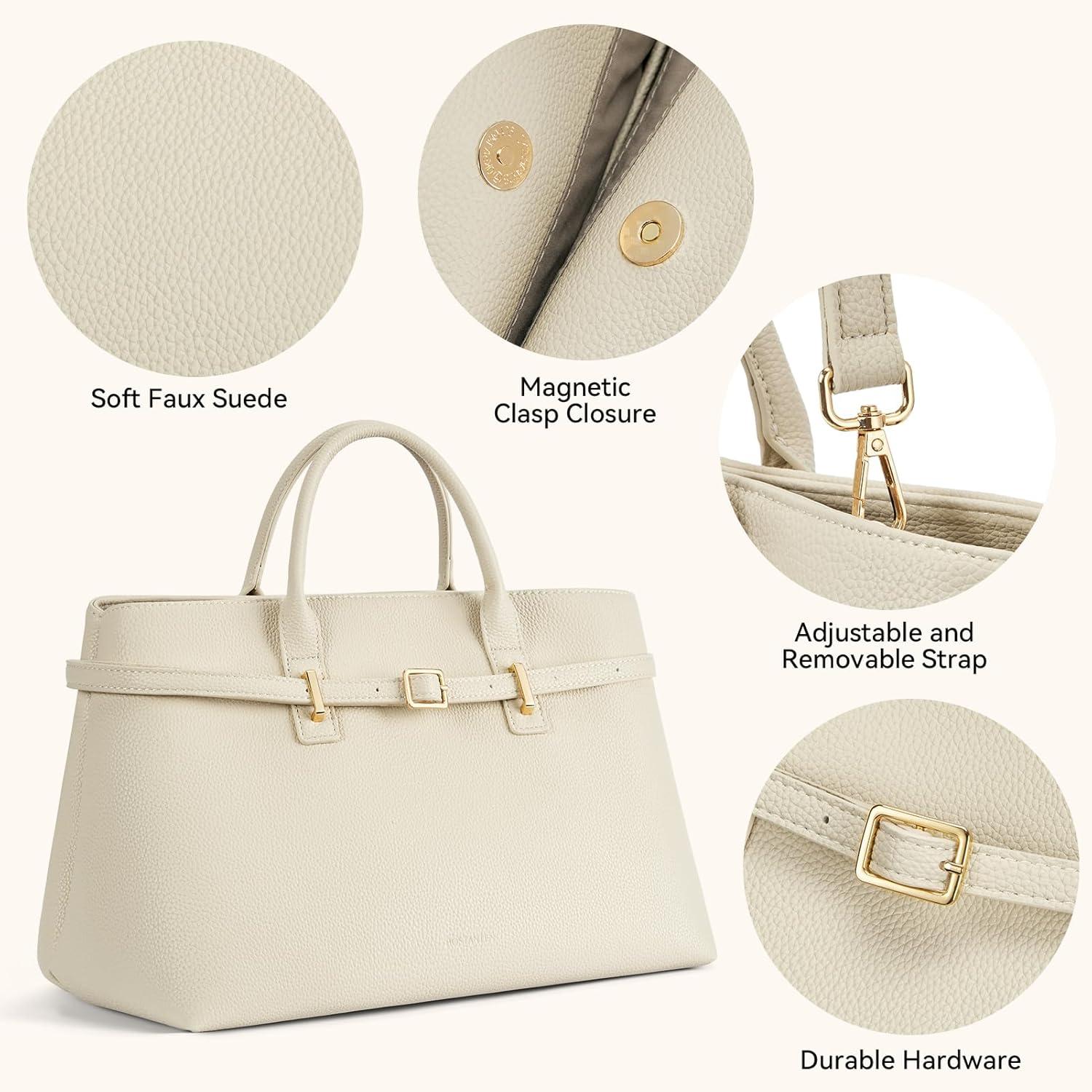 BOSTANTEN Top Handle Purses for Women Vegan Leather Suede Tote Satchel Bag Designer Fall Handbag with Adjustable Strap(Beige)