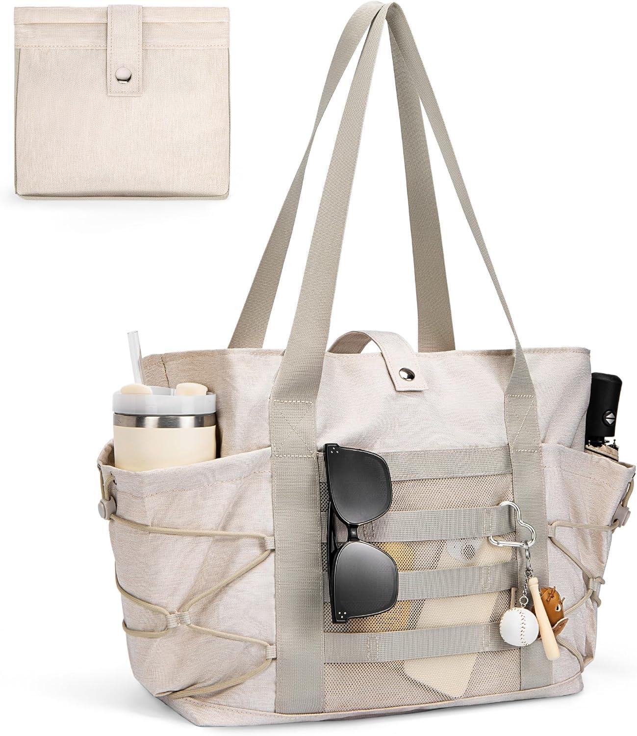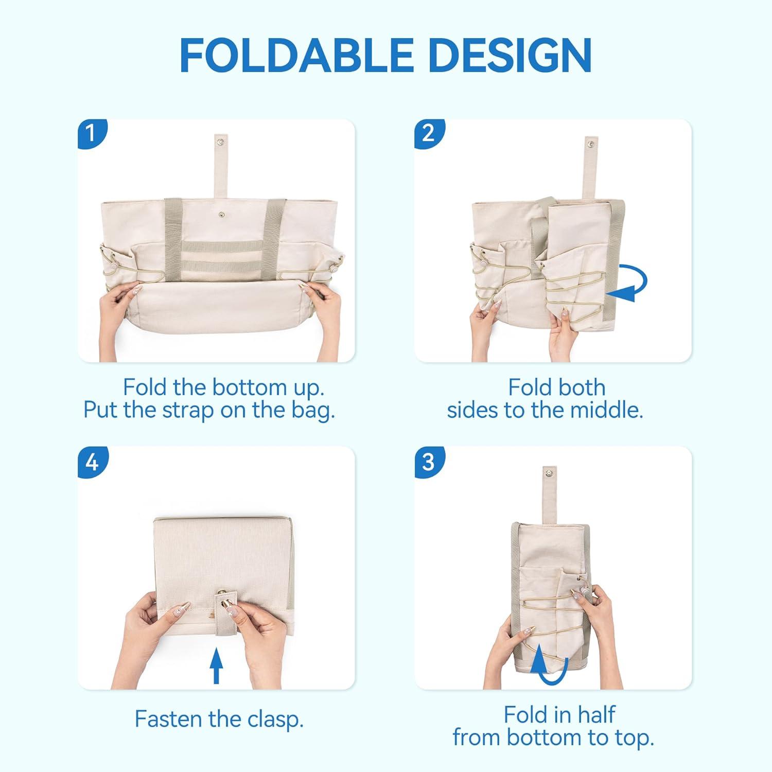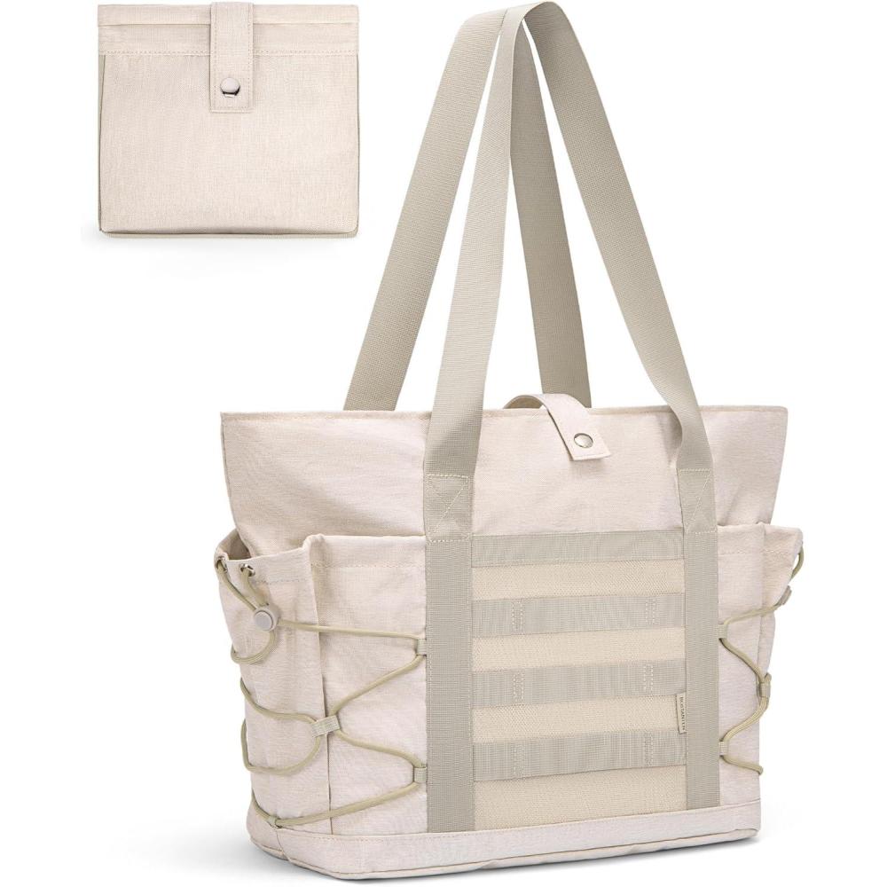 BOSTANTEN Travel Tote Bags for Women Foldable Beach Bag Waterproof Zipper Gym Sports Shopping Bag Trolley Sleeve(A-off-white)